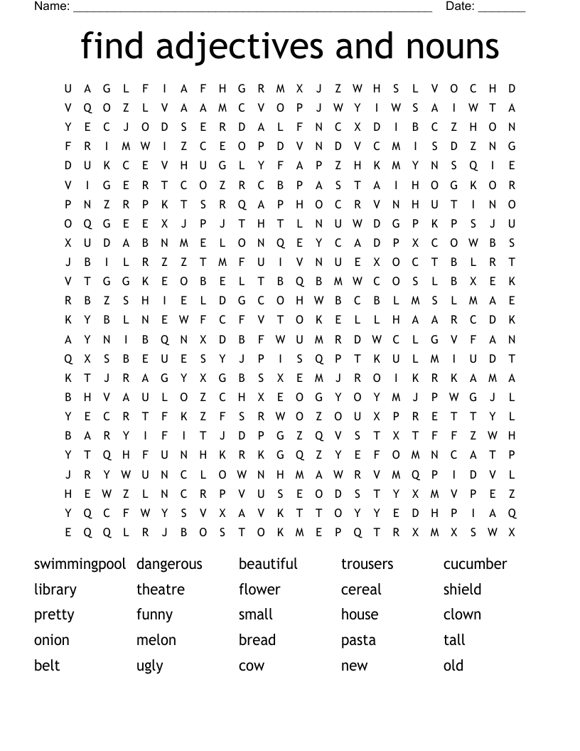 Find Adjectives And Nouns Word Search WordMint