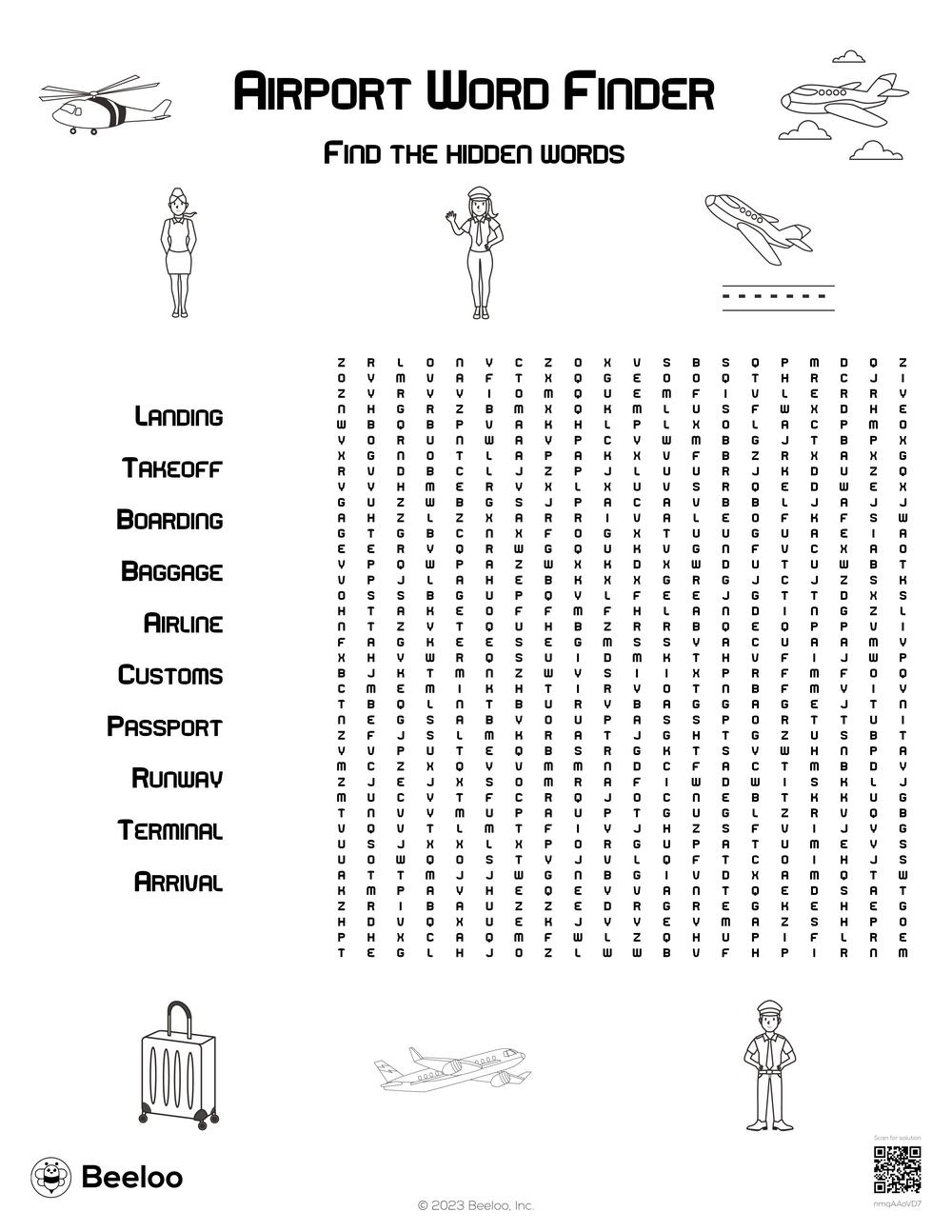 Airport themed Word Searches Beeloo Printable Crafts And Activities For Kids