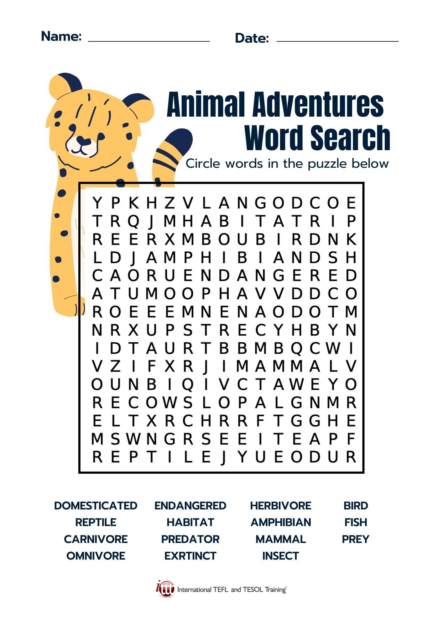 Animal Adventure Word Search ITTT