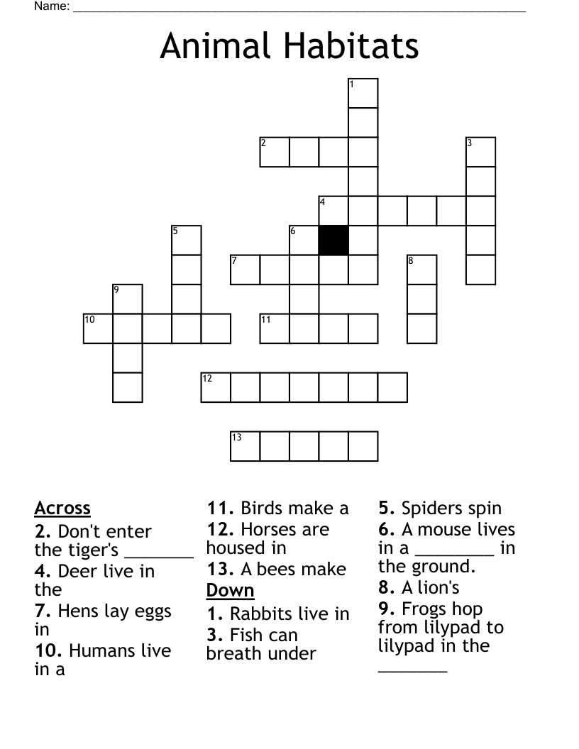 Animal Habitats Crossword WordMint
