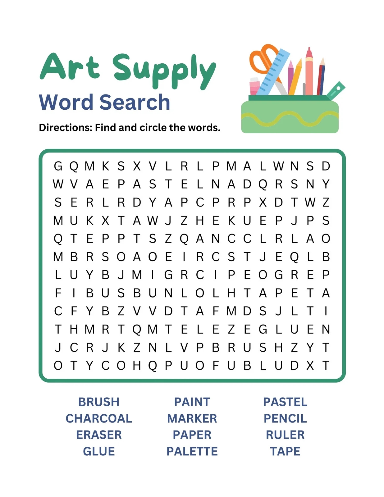 Art Word Search Printable Puzzle FREE Growing Play