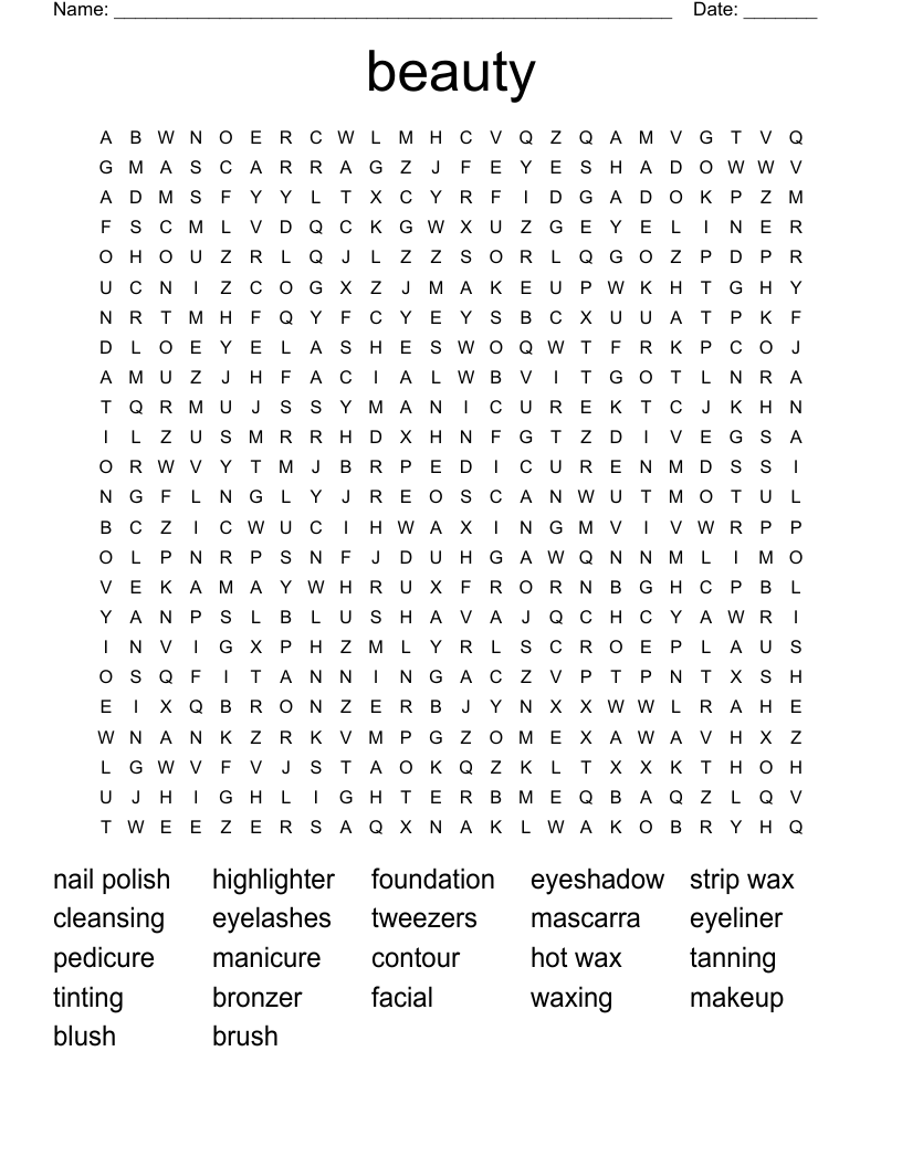 Share this printable with your fellow beauty lovers and see who can finish the puzzle first. You can even turn it into a friendly competition to see who reigns supreme as the ultimate beauty word search champion. Get ready to put your beauty knowledge to the test!