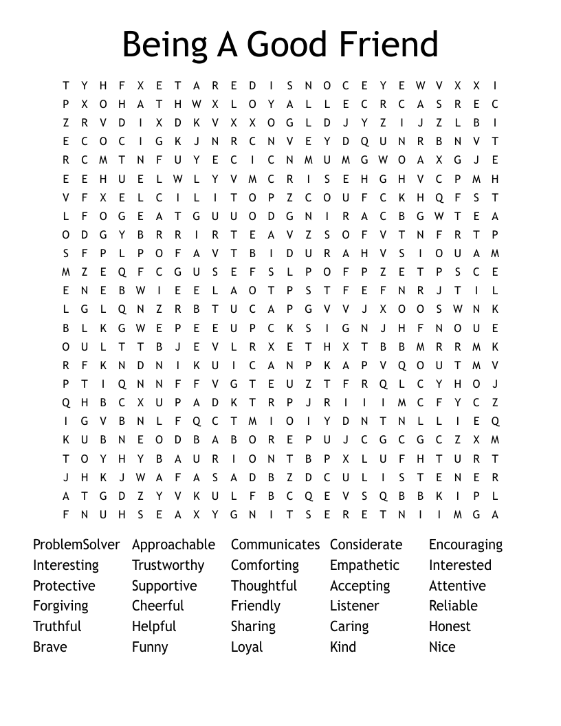 Being A Good Friend Word Search WordMint