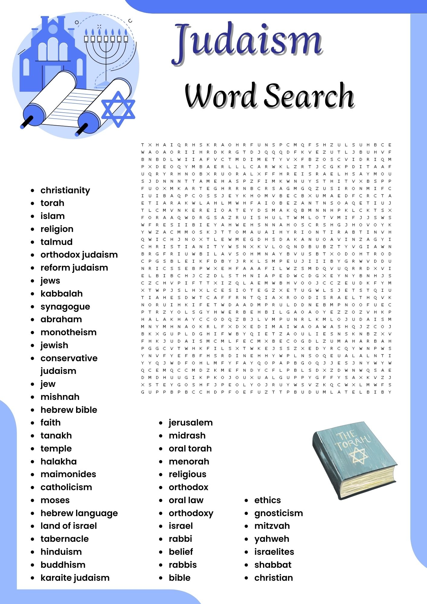 judaism word search puzzle work sheet activities for kids made by teachers