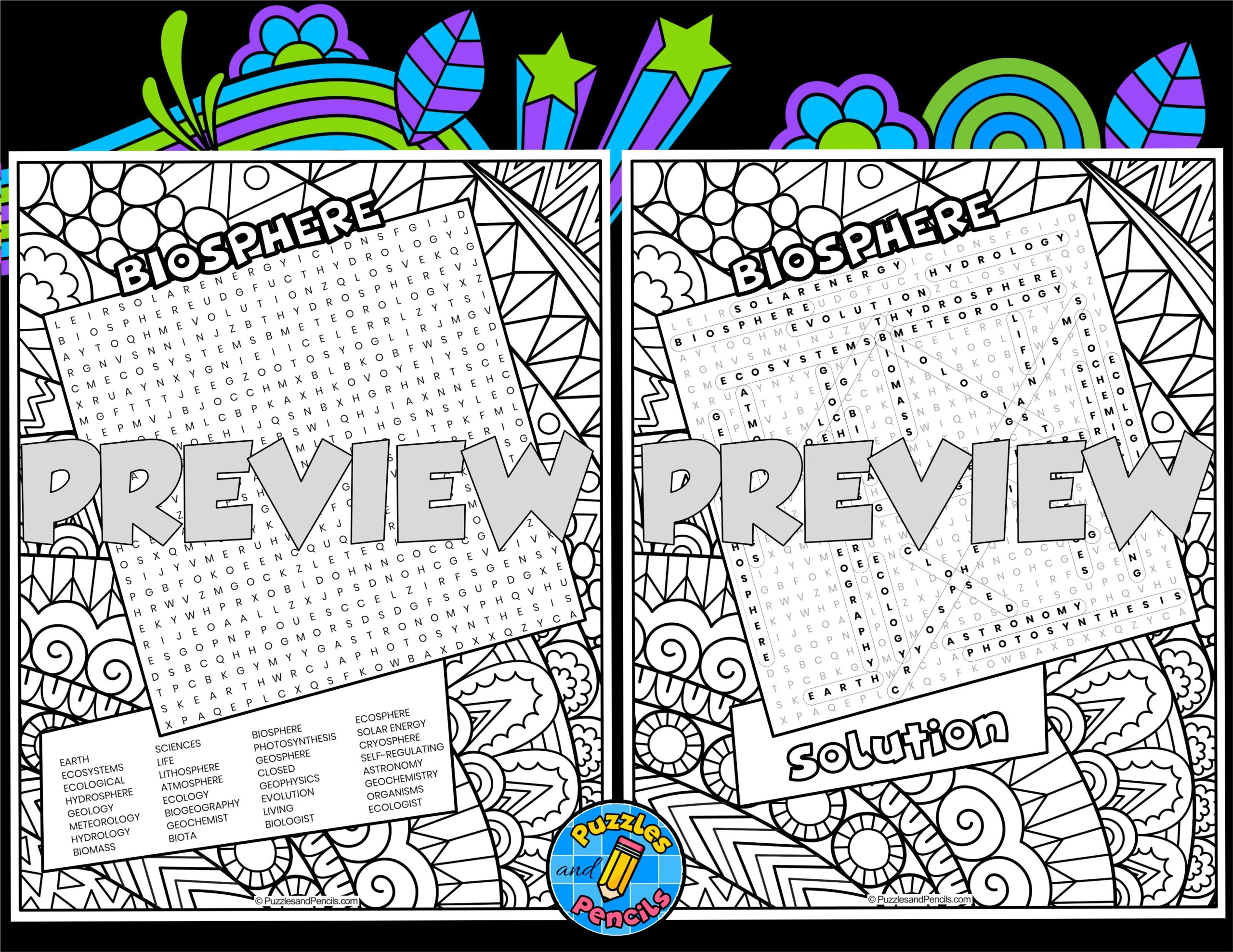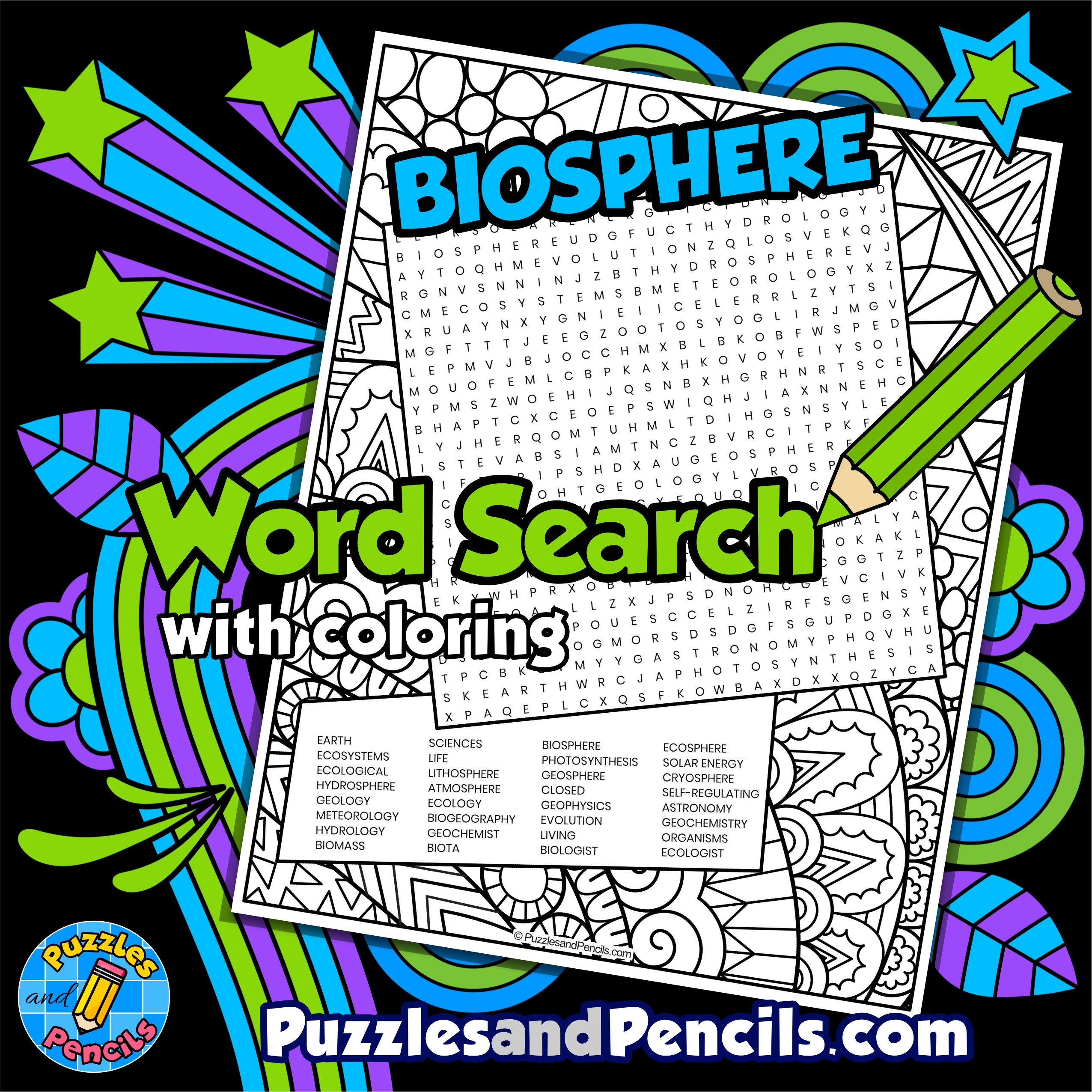 Biosphere Word Search Puzzle With Coloring Earth Sciences Wordsearch Made By Teachers