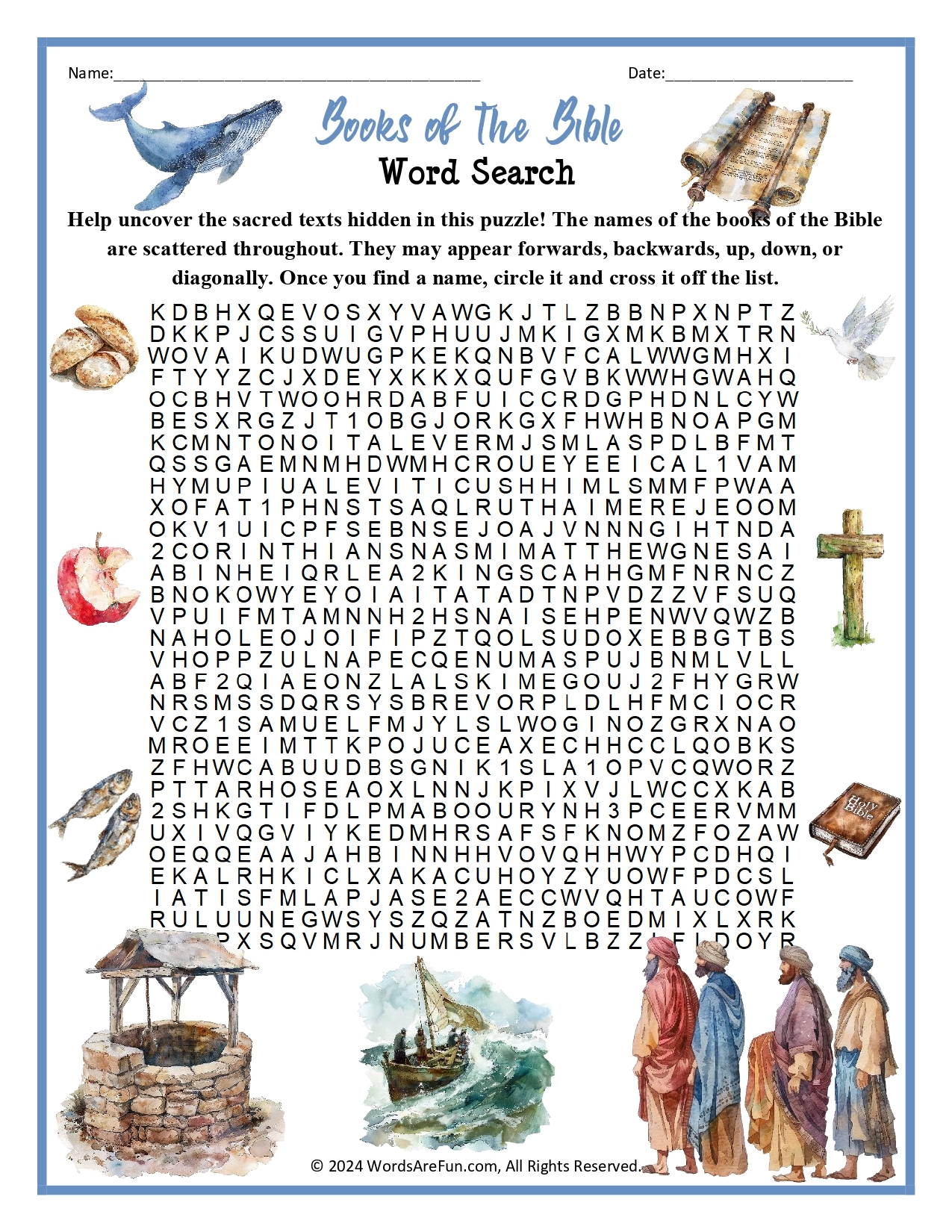 With this printable word search, you can challenge yourself to find the names of all the books of the Bible hidden within the grid. It’s a great way to learn or reinforce your understanding of the different books and their order in the Bible.