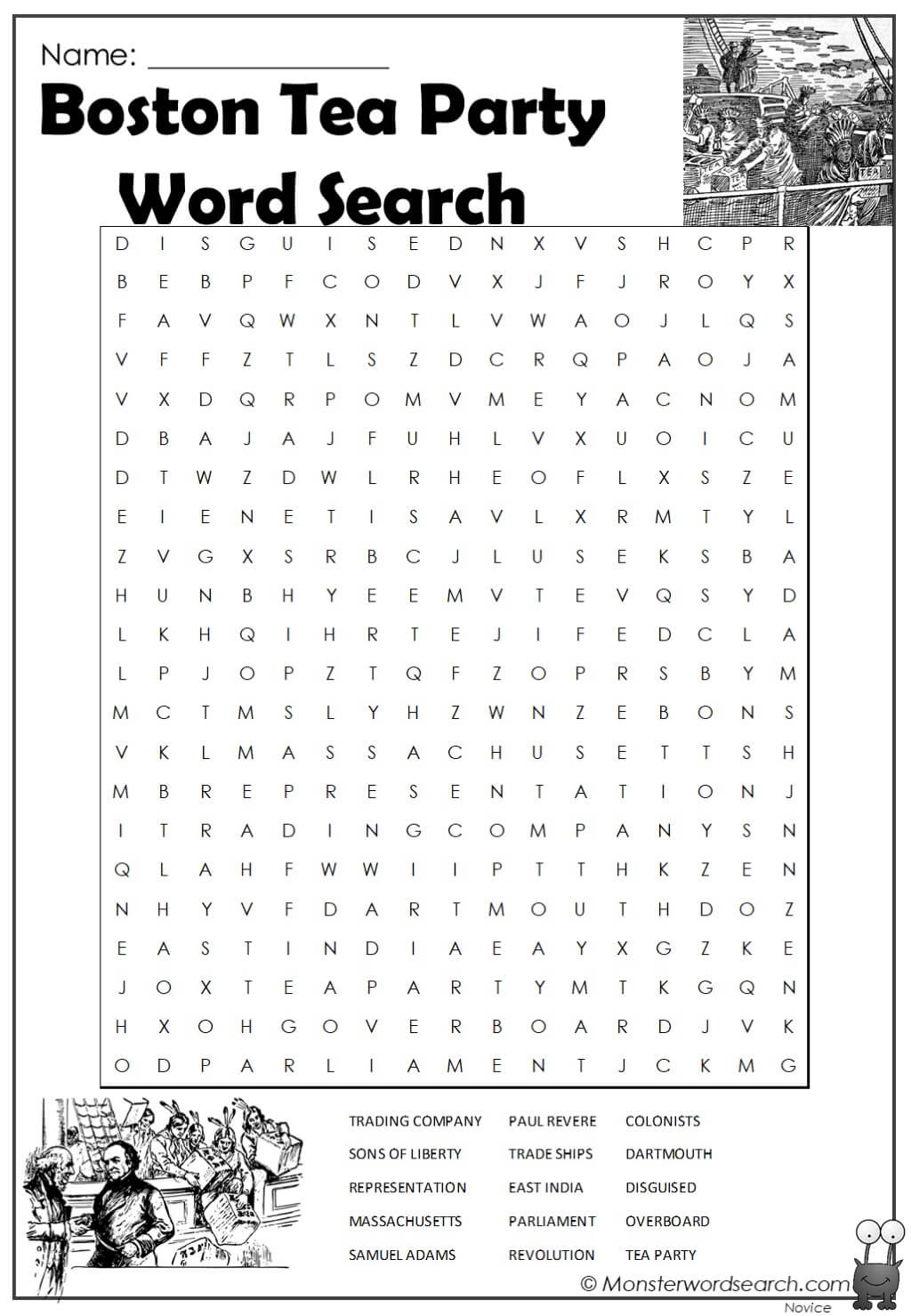 Boston Tea Party Word Search Monster Word Search Worksheets Library