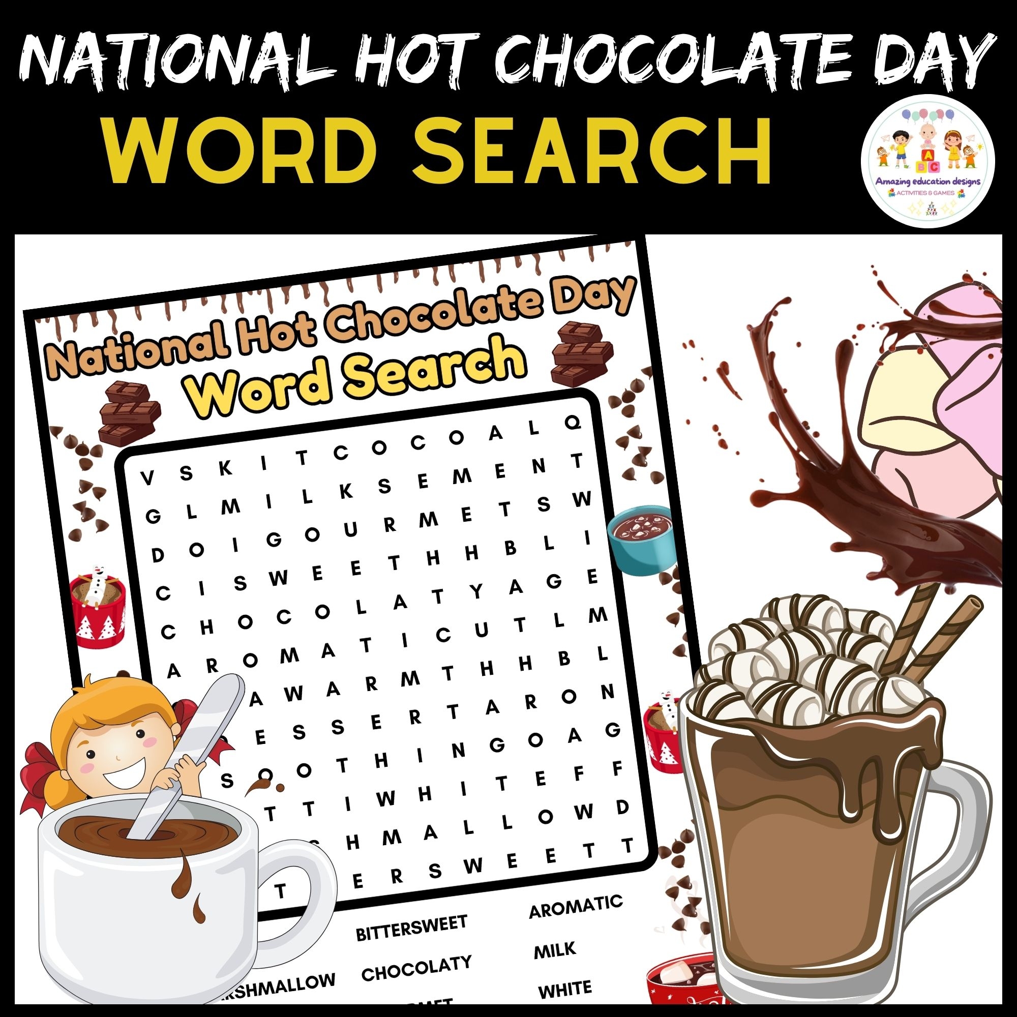Hot Cocoa Word Search Printable Instant Download PDF Etsy