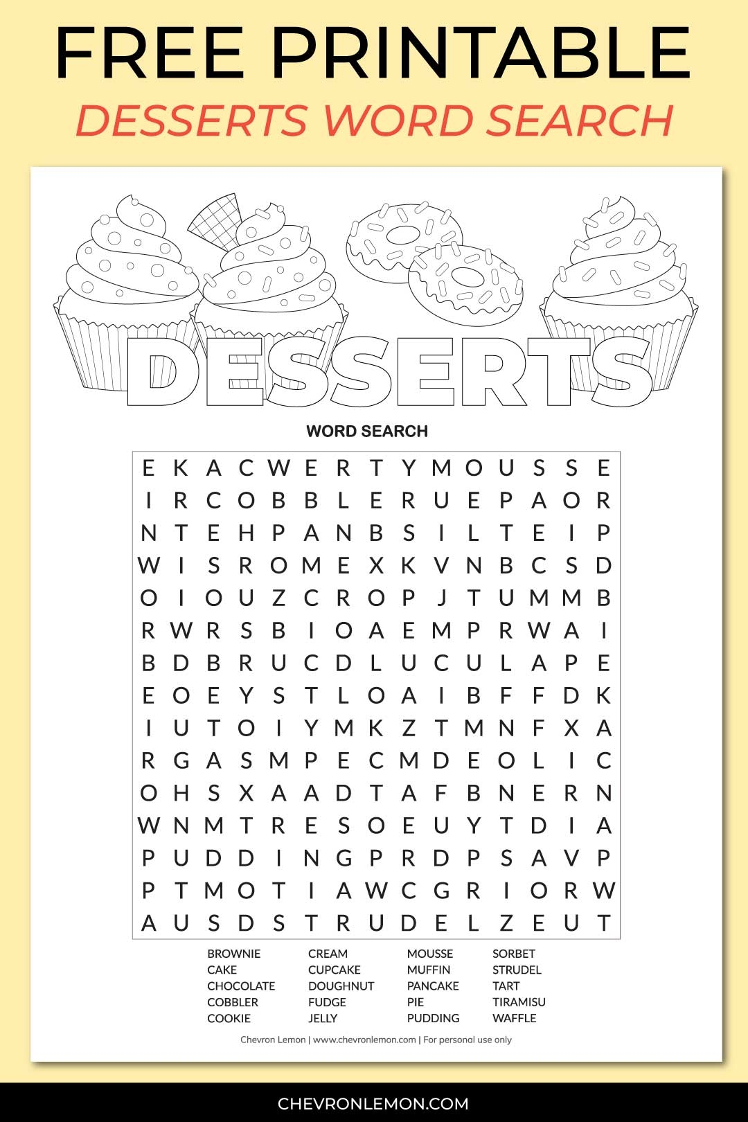 Printable Desserts Word Search Chevron Lemon