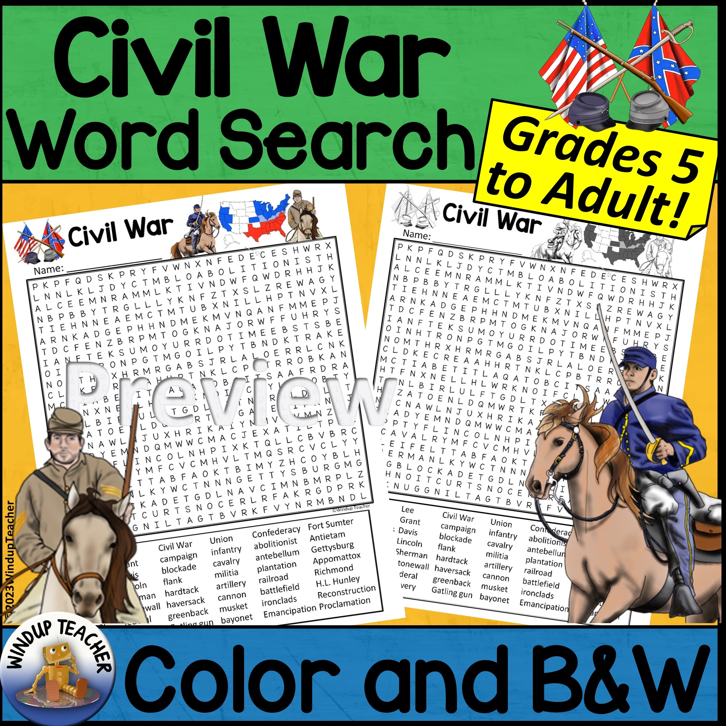 civil war word search hard for grades 5 and up made by teachers