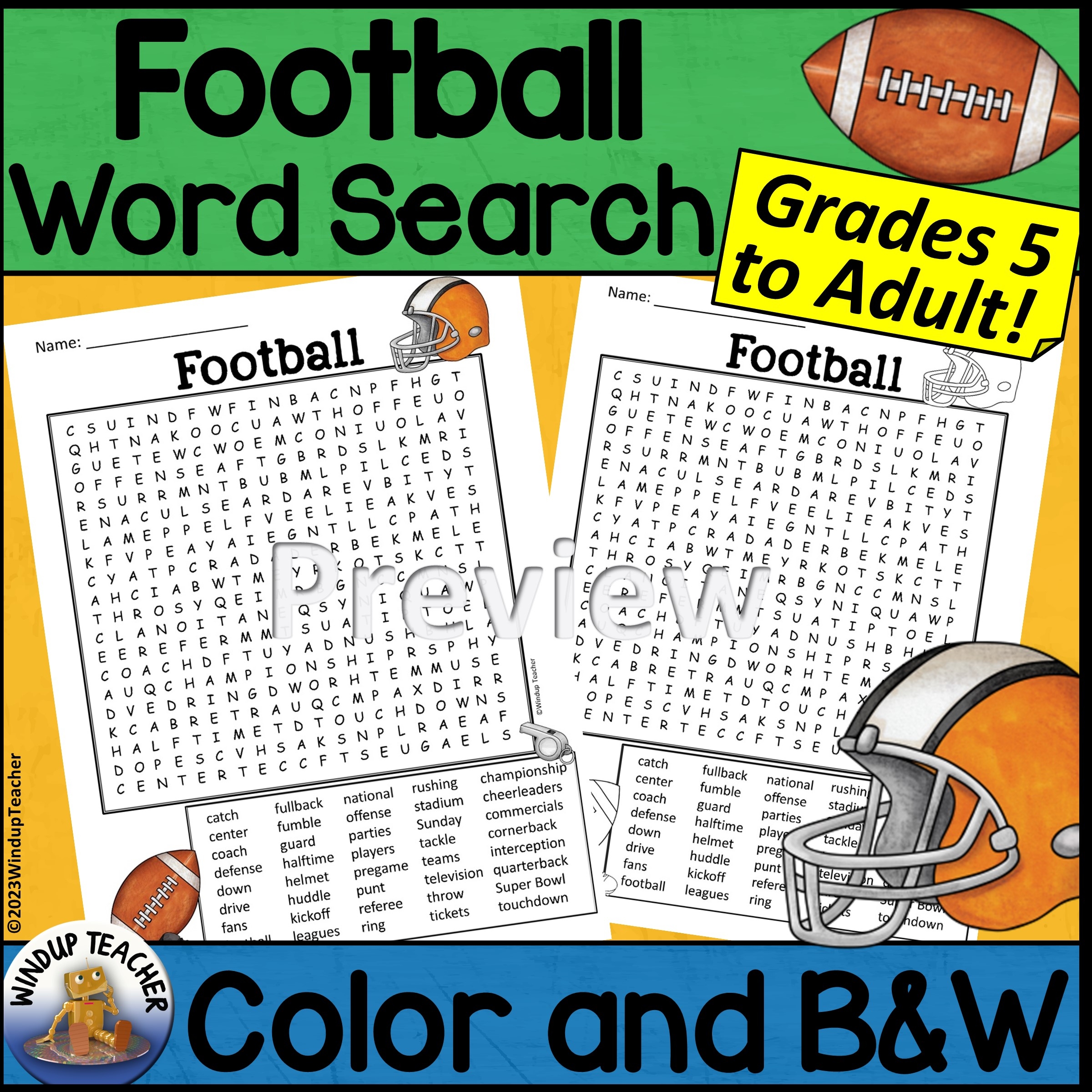 football word search activity hard for grades 5 to adult made by teachers