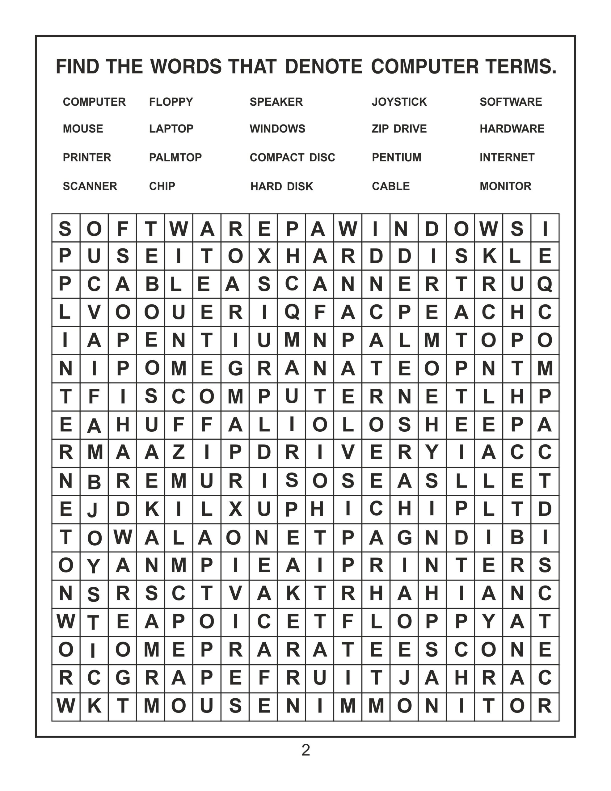 Computer terms word searches are a great way to introduce children to the world of technology in a fun and interactive way. They can improve their spelling, vocabulary, and cognitive skills while having a blast searching for words related to computers, software, and hardware.