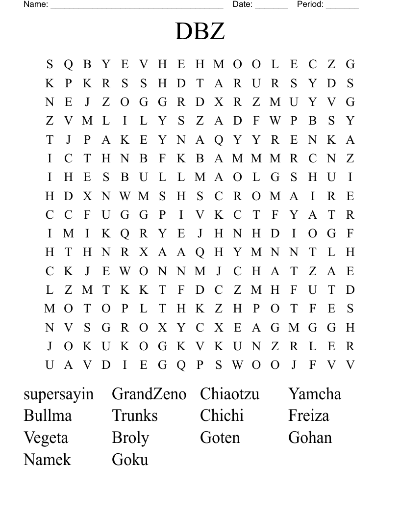DBZ Word Search WordMint