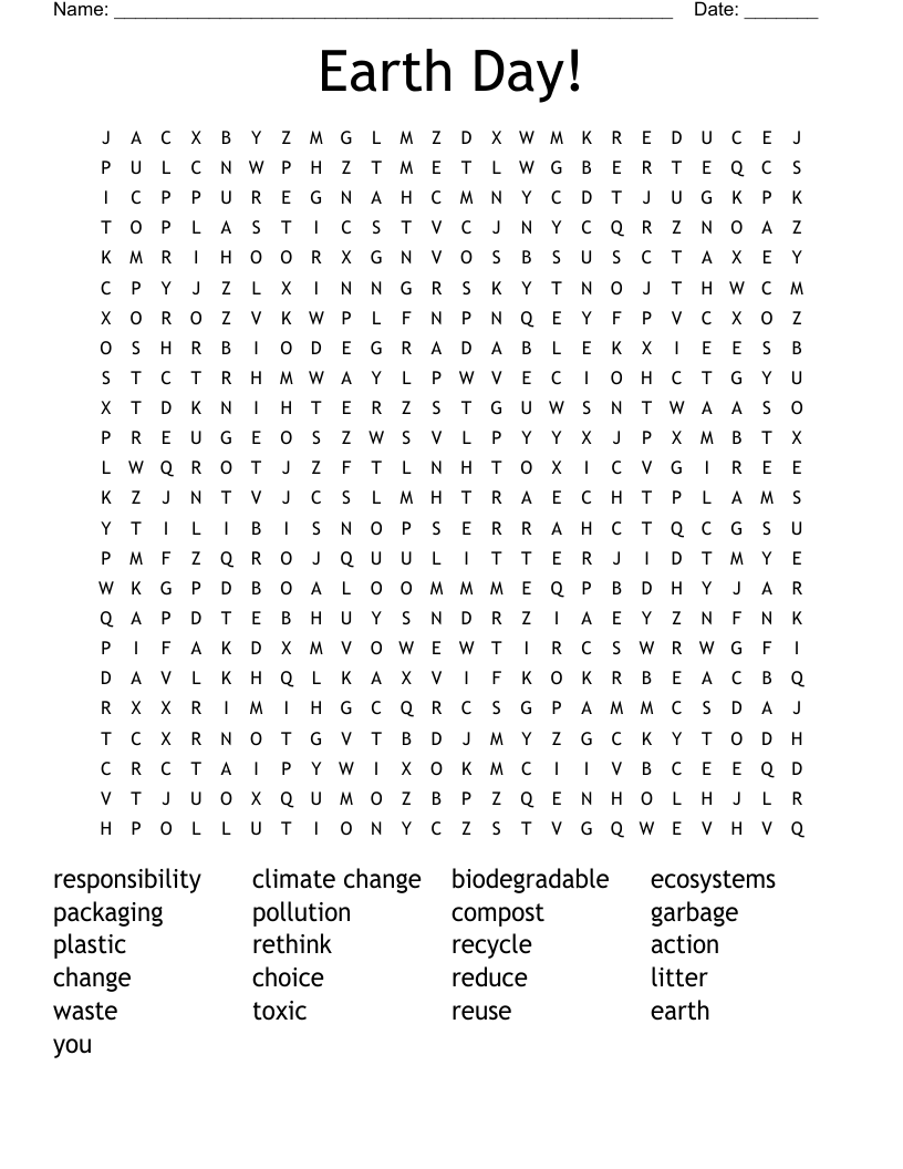 Earth Day is a time to celebrate our planet and raise awareness about environmental issues. One fun way to engage with Earth Day is by completing a word search puzzle. If you’re looking for a free and printable Earth Day word search, you’re in luck!