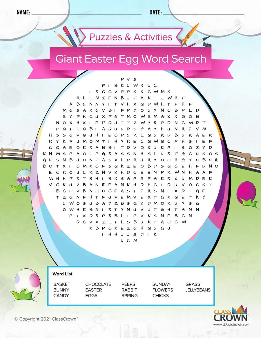 Giant Easter Egg Word Search Puzzles ClassCrown