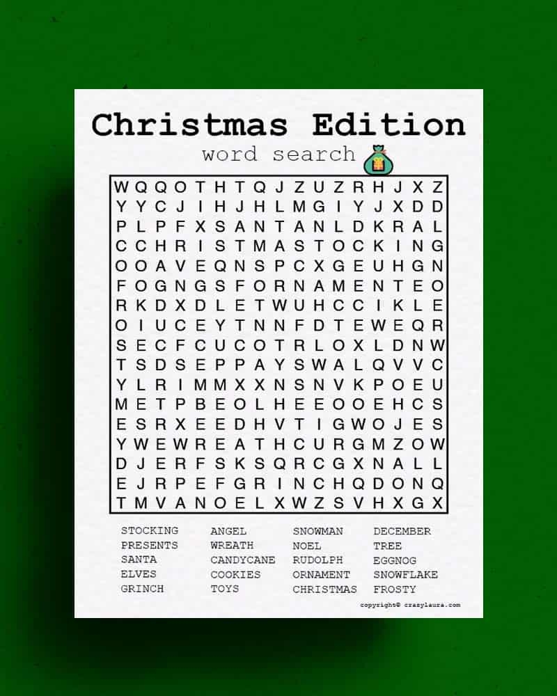 Free Christmas Word Search Printable PDF Game Sheets Crazy Laura