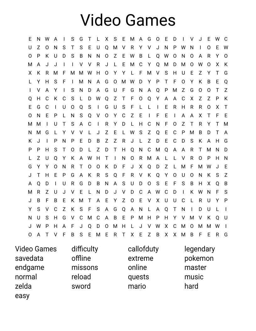 Video Games Word Search WordMint