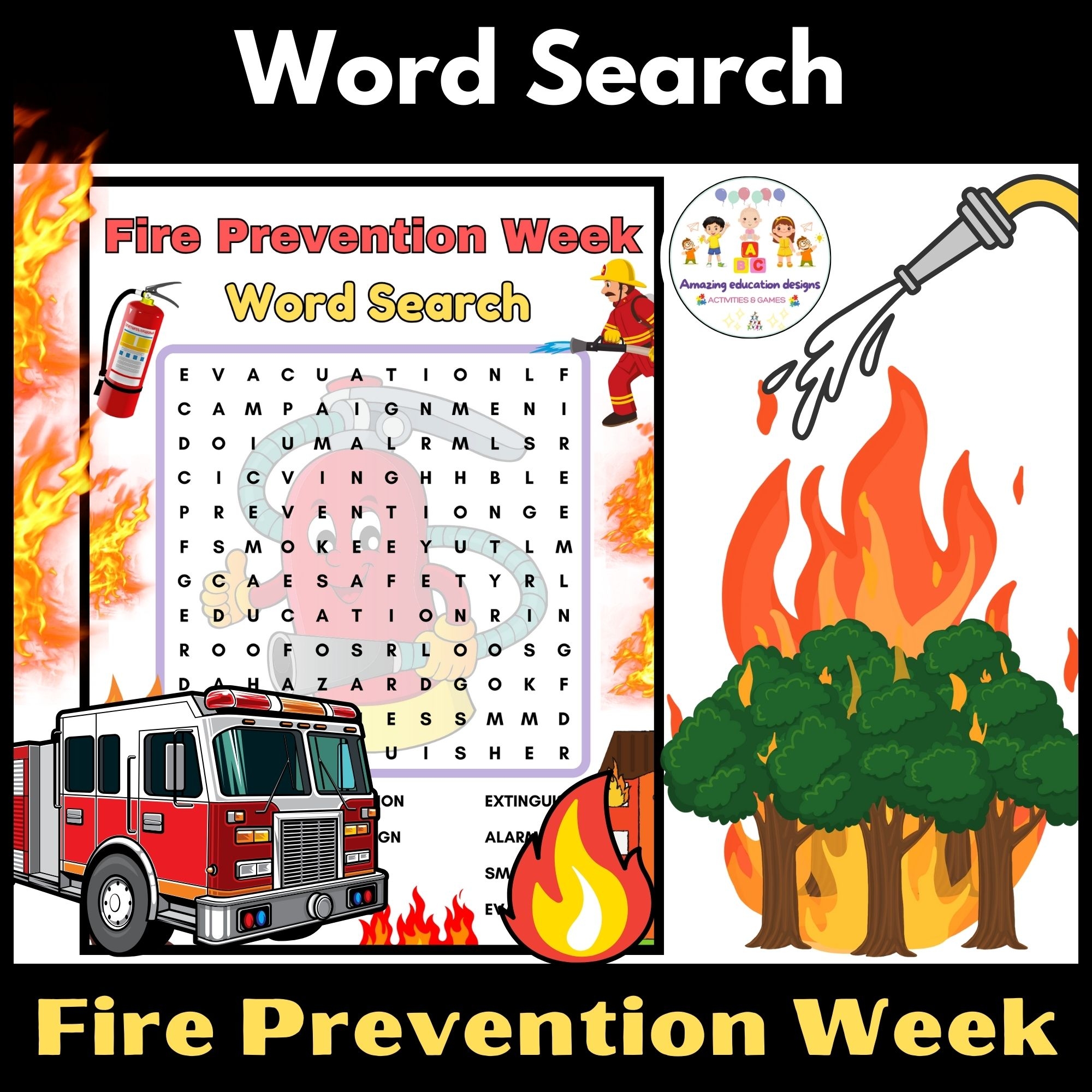 Fire Safety Word Search Printable PDF Etsy