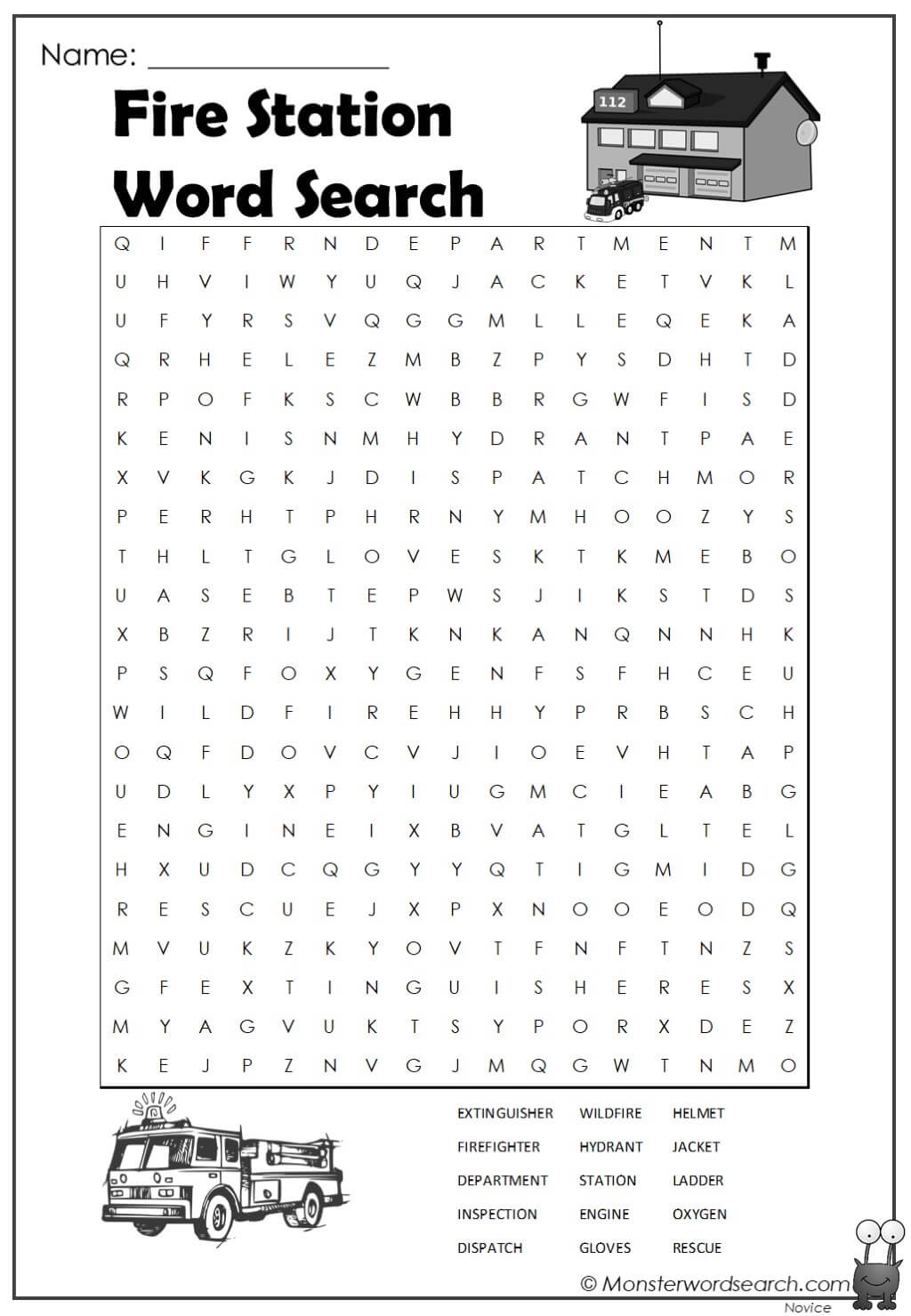 Fire Station Word Search Monster Word Search