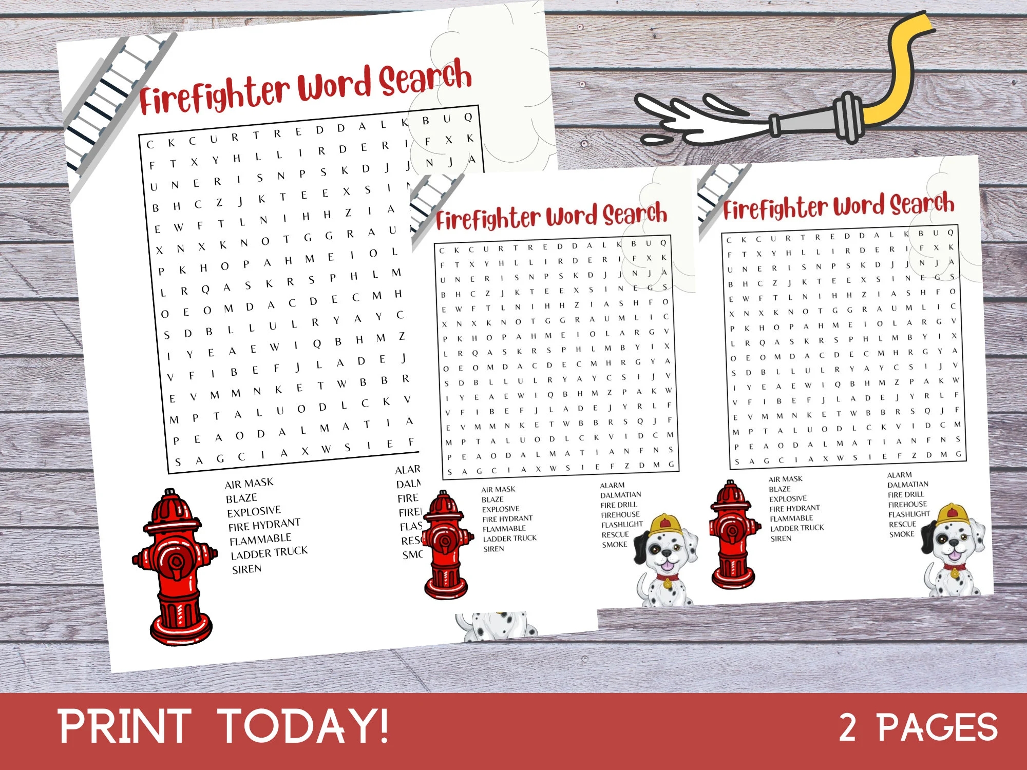 Kid s Firefighter s Word Search PDF Instant Digital Download Printable Download Classroom Activity Childrens Birthday Party Activity Etsy