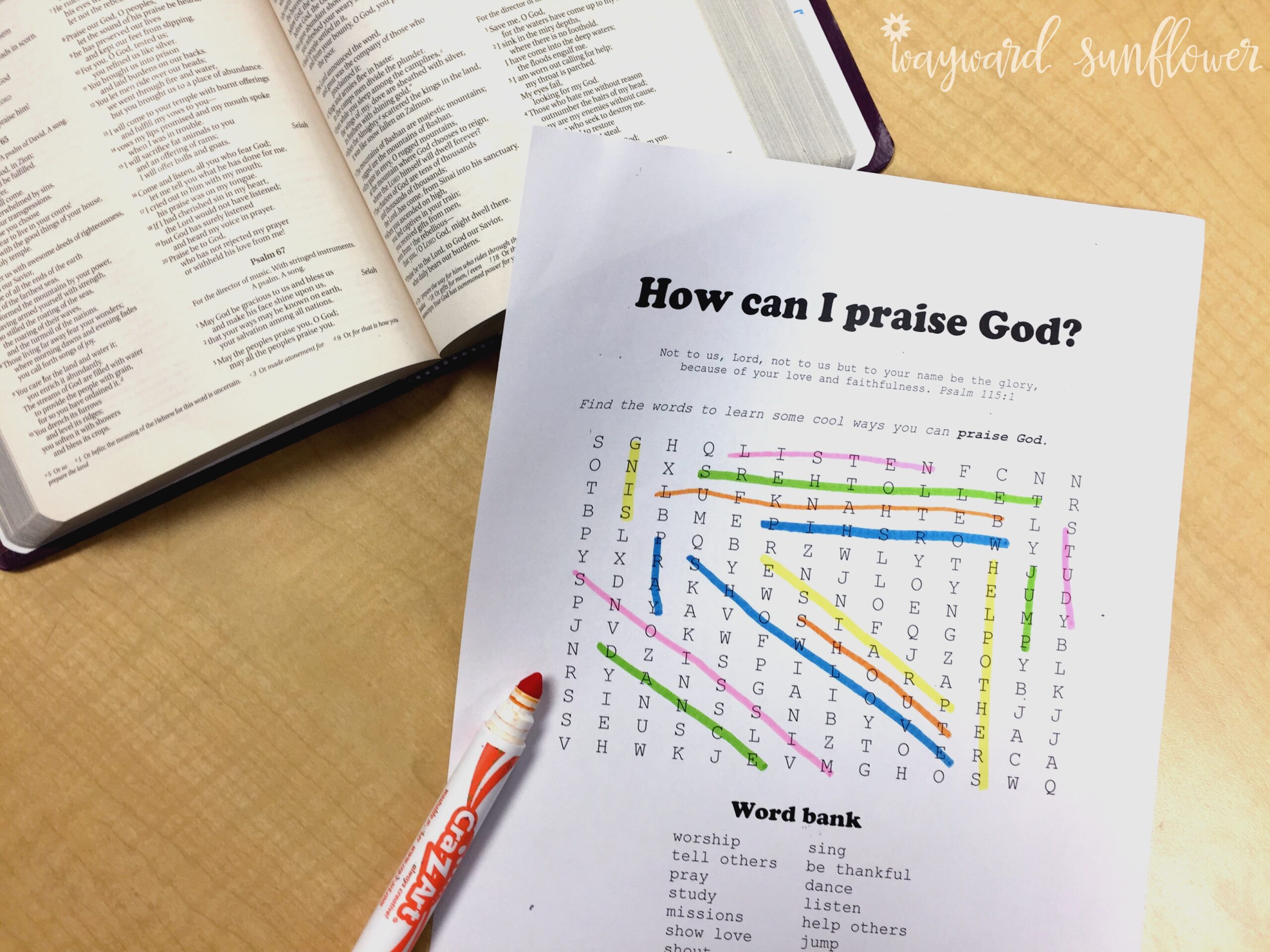 Teaching Kids About Praise Free Word Search Printable Wayward Sunflower