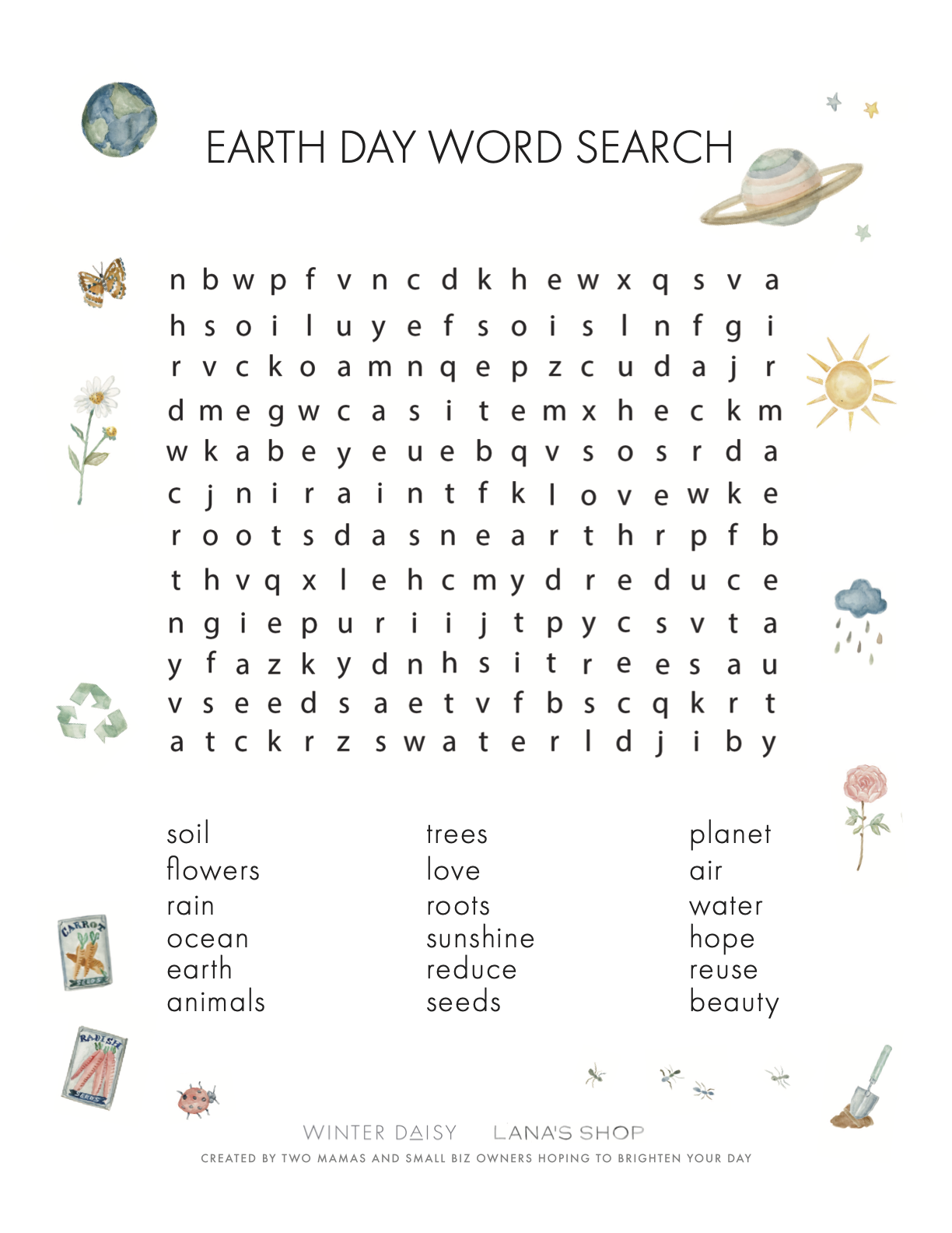 So, this Earth Day, why not gather your friends and family for a fun activity that also promotes eco-consciousness? Print out a Free Printable Earth Day Word Search and see who can find all the words first!
