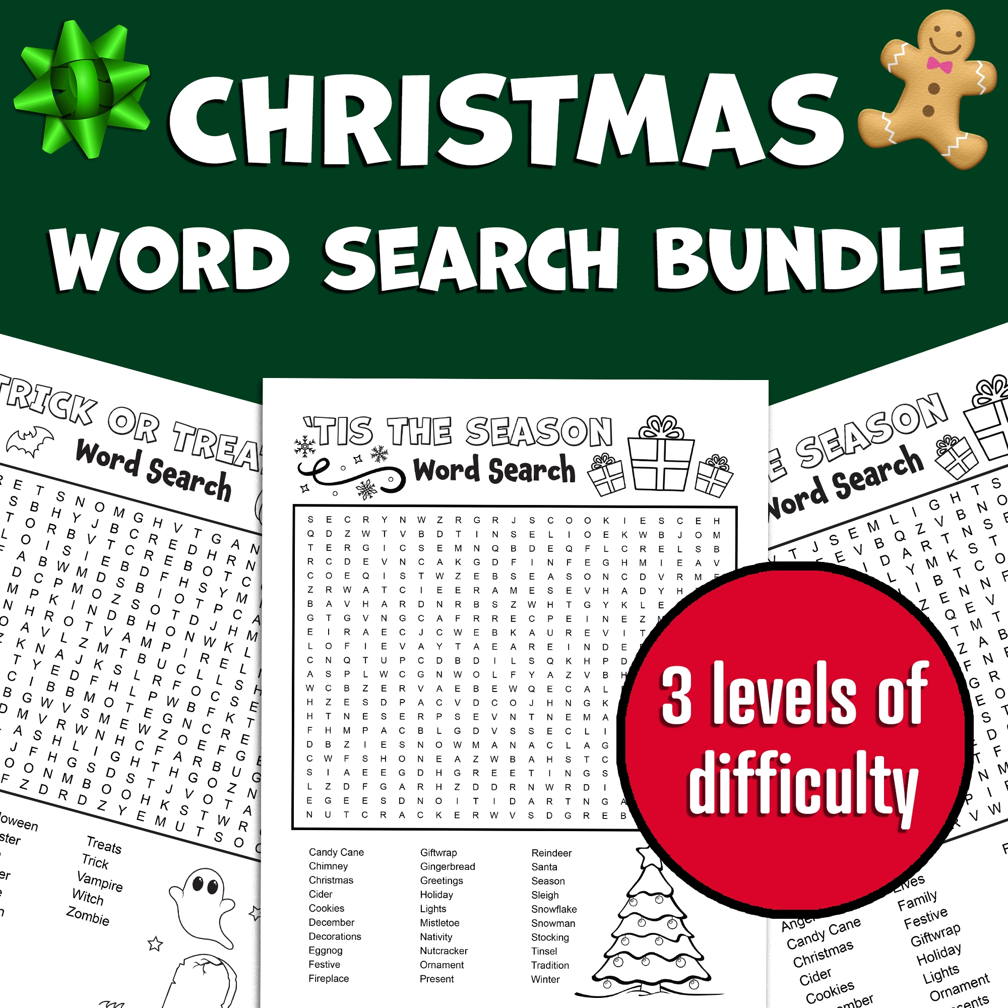 BUNDLE Christmas Word Search Puzzle Easy Medium Hard Winter Word Search Made By Teachers