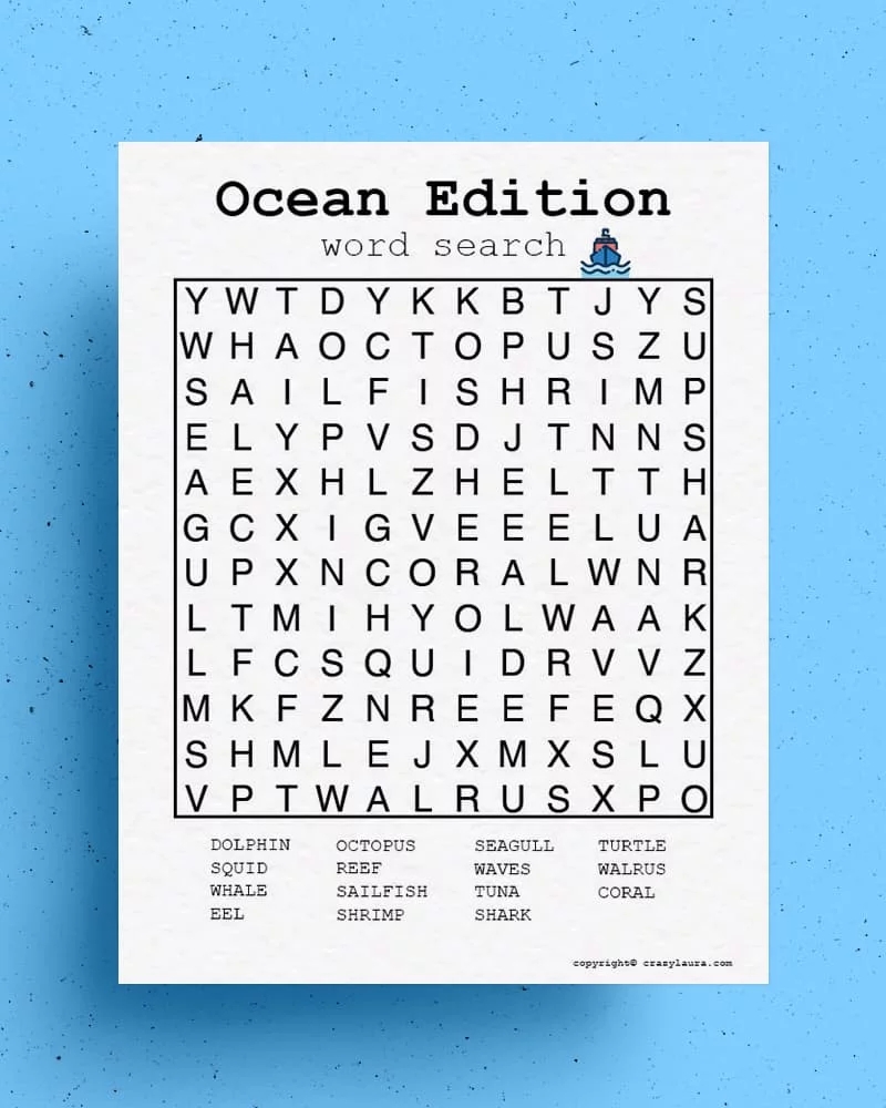 Free Ocean Word Search Printable Game Sheets Crazy Laura