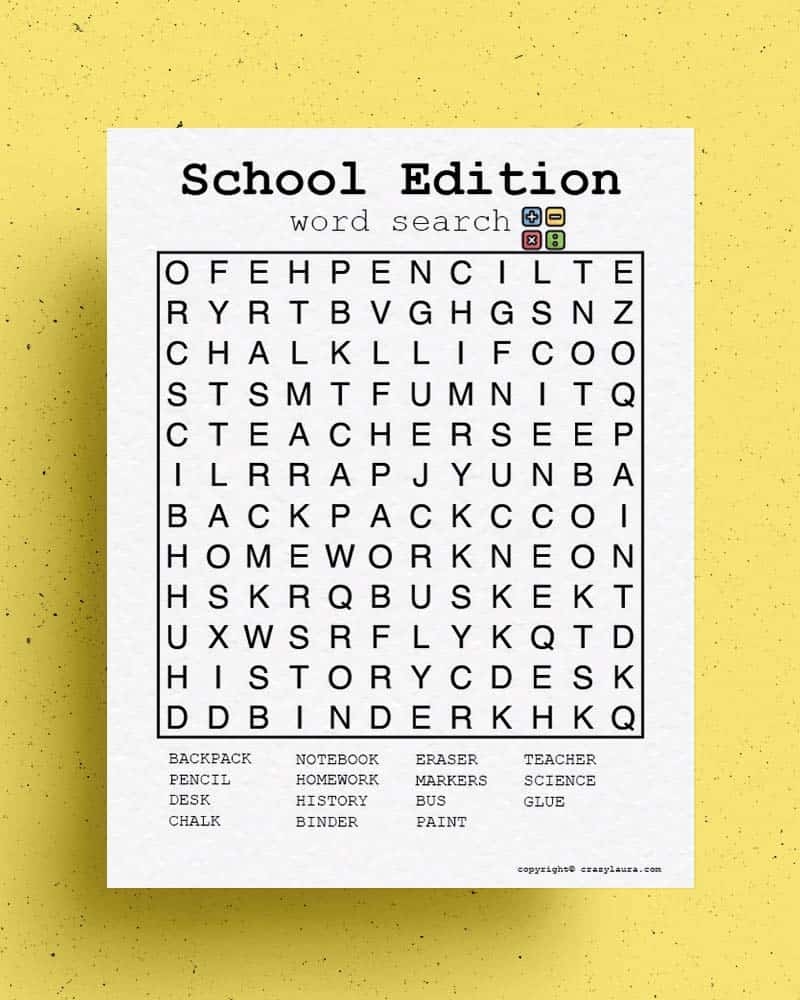 Free School Word Search Printable Games PDF Sheets Crazy Laura