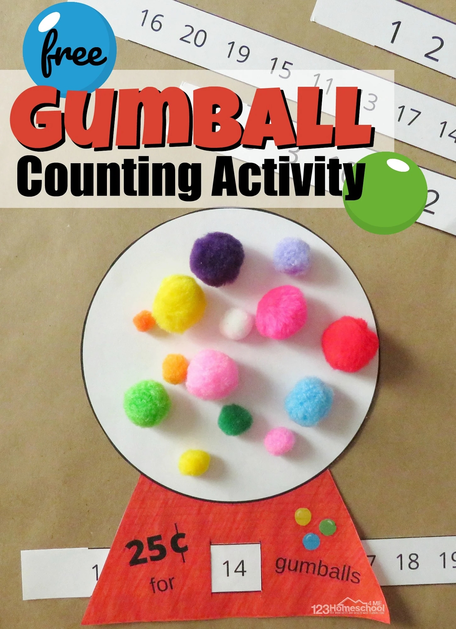 Free Printable Gumball Counting Activity For Preschool And Kindergarten
