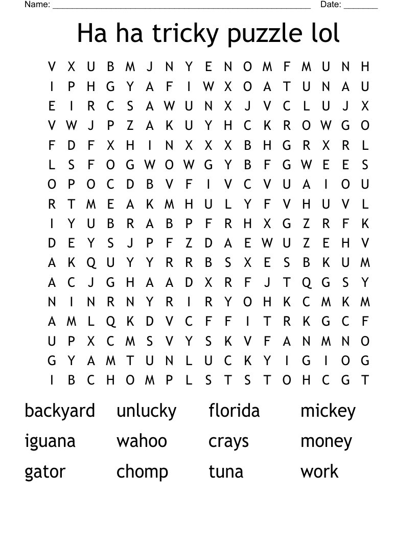 Ha Ha Tricky Puzzle Lol Word Search WordMint