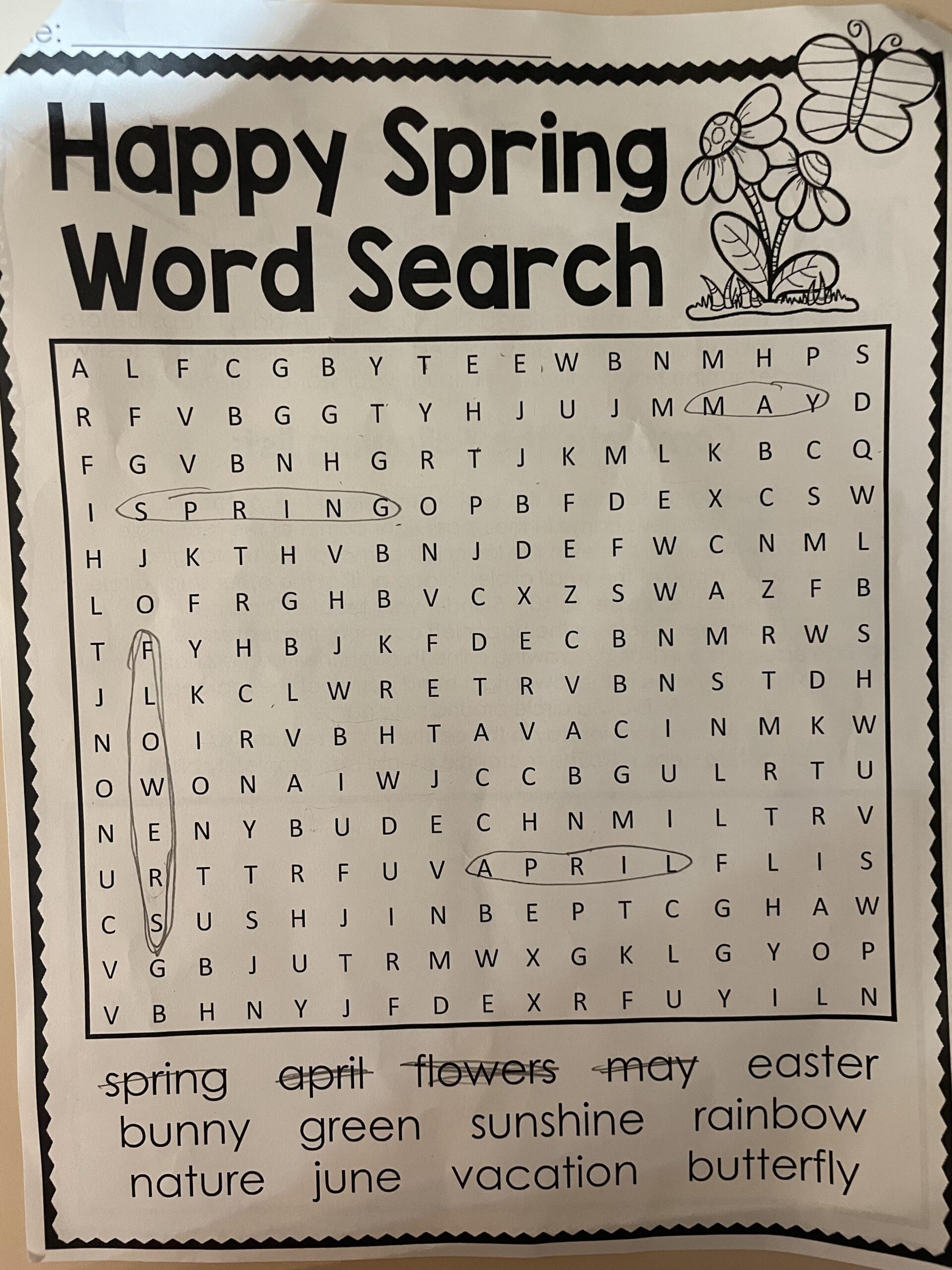 My Daughter Was Given A Word Search For Spring Time We ve Been Looking For An Hour And Still Can t Find Any Other Words Lol R mildlyinfuriating