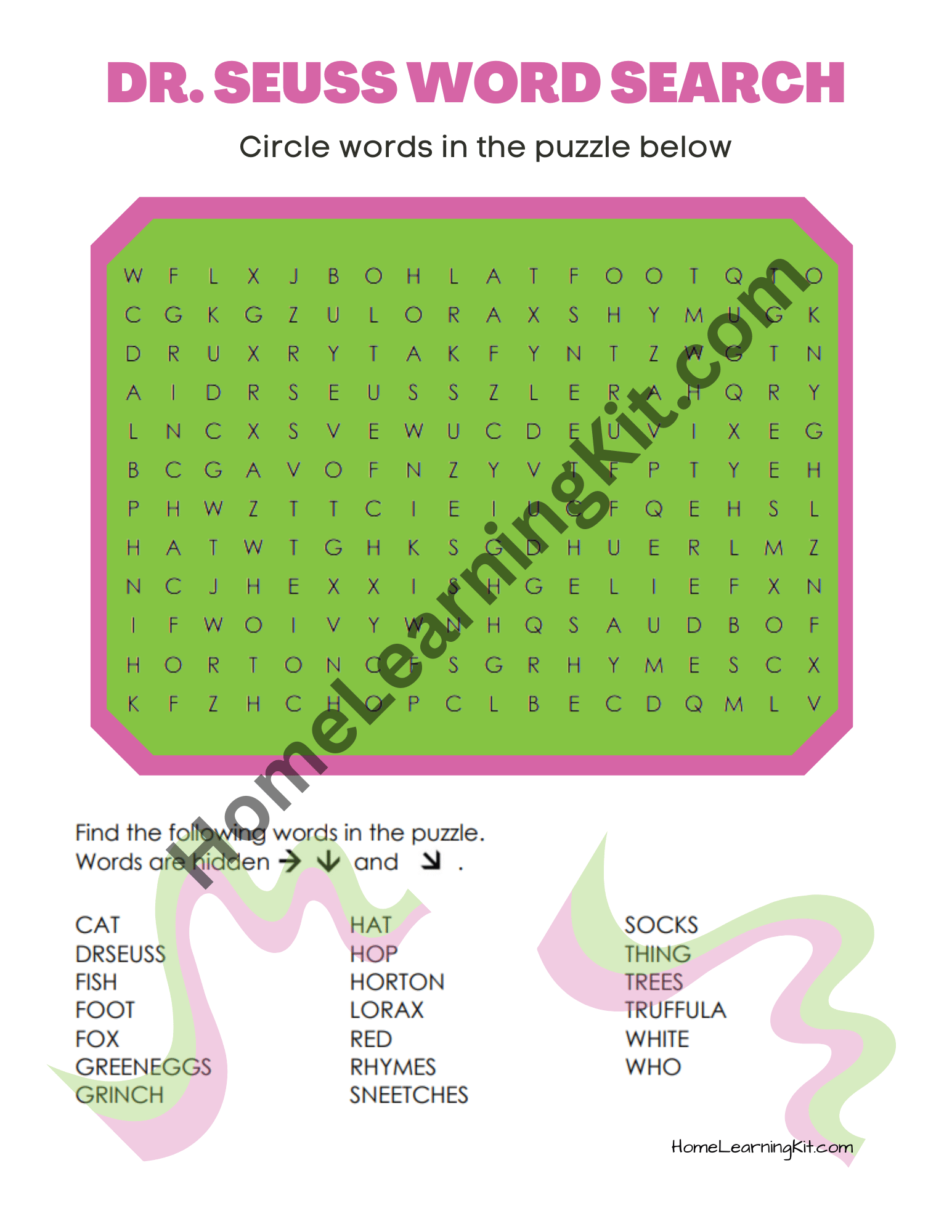 the cat in the hat by dr seuss word search monster word search