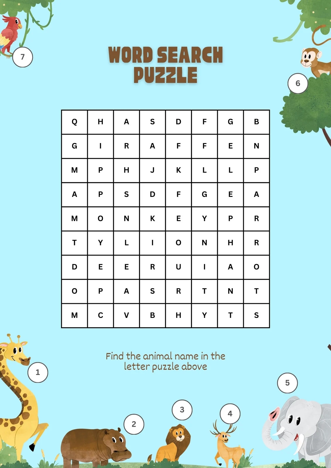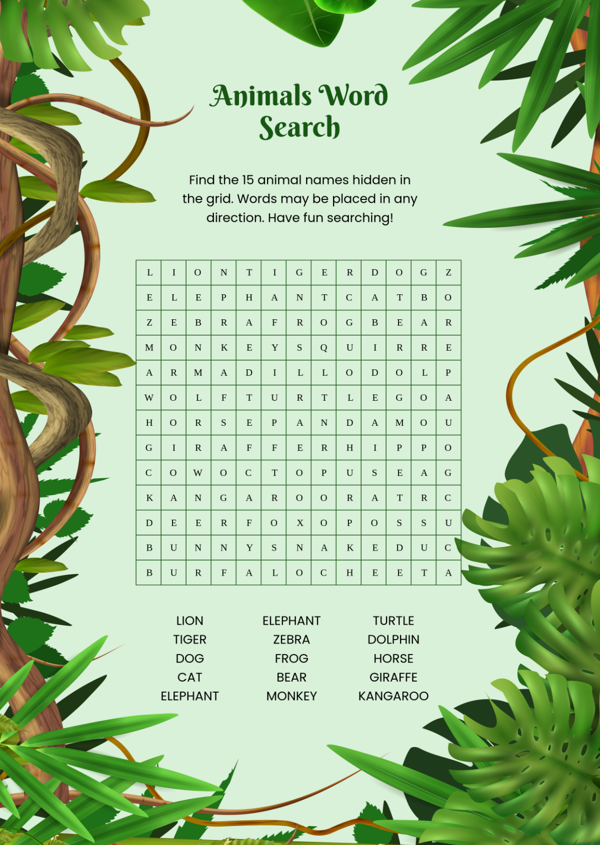 Free Animals Word Search Template To Edit Online