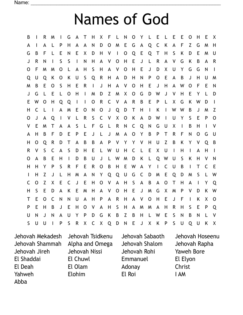 Free Printable Names Of God Word Search