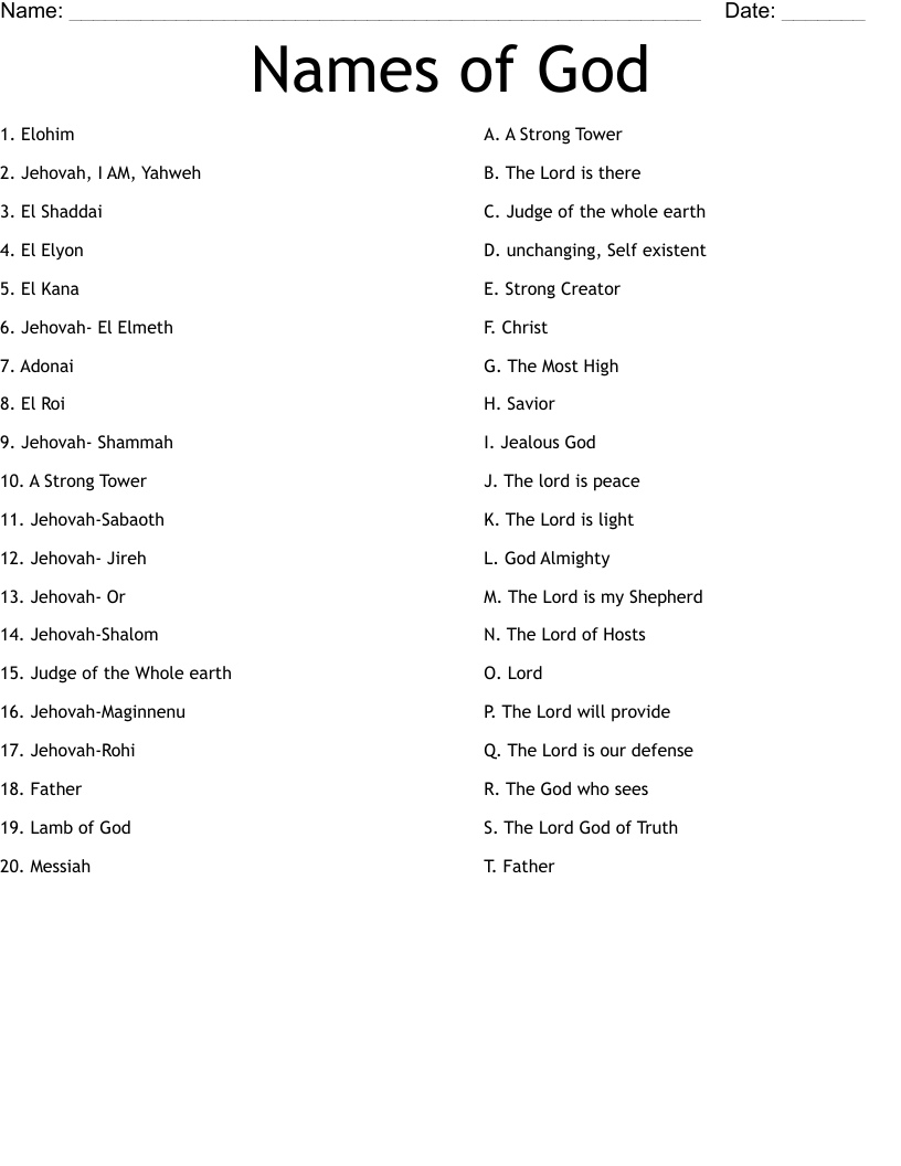 Names Of God Worksheet WordMint