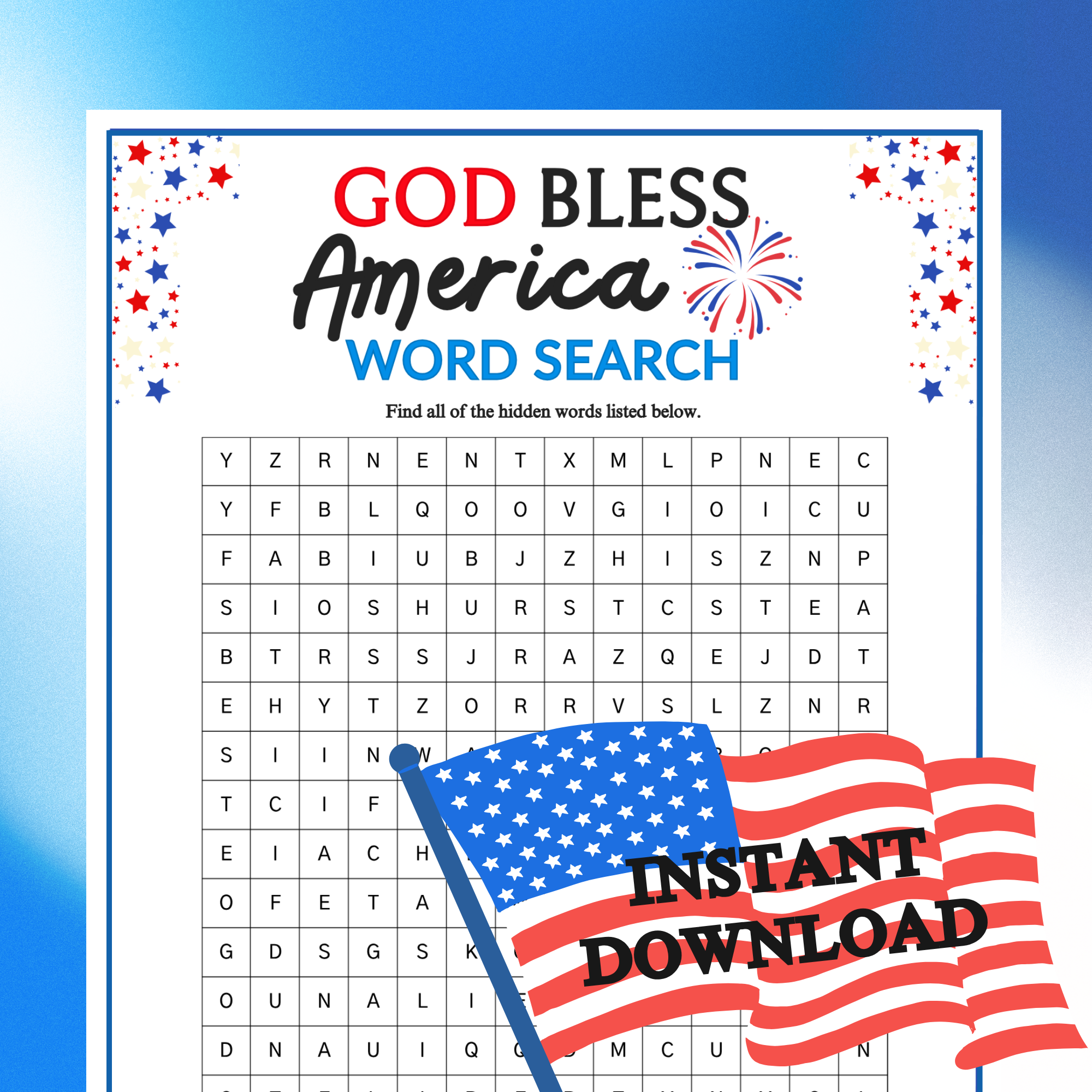 July 4th God Bless America Word Search Printable For Church Kids Teens Adults Sunday School Ministry Homeschool Bible Group Learning Activity Classful