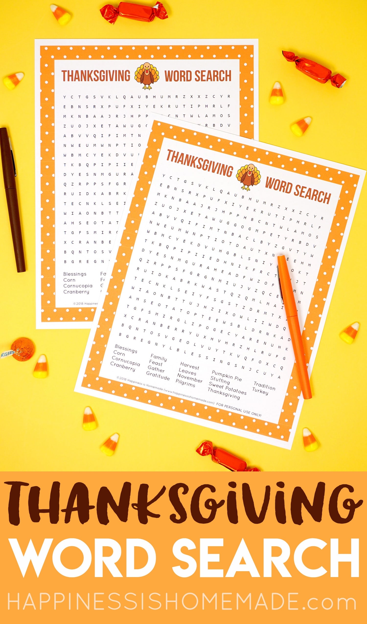Simply download and print out the word search, grab a pen or pencil, and get ready to hunt for words like “pumpkin,” “gravy,” and “cornucopia.” It’s a great way to get into the holiday spirit and pass the time while enjoying the company of loved ones.