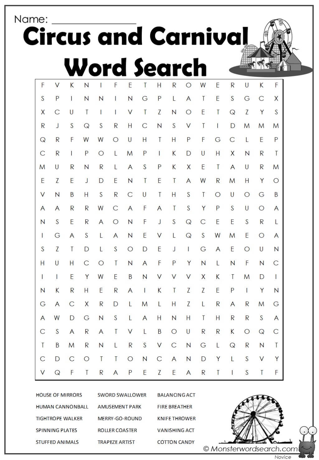 Our carnival-themed word search puzzle features a variety of festive words related to the carnival, such as cotton candy, roller coaster, ferris wheel, and more. Simply download and print out the puzzle, grab a pen or pencil, and start searching for the hidden words.