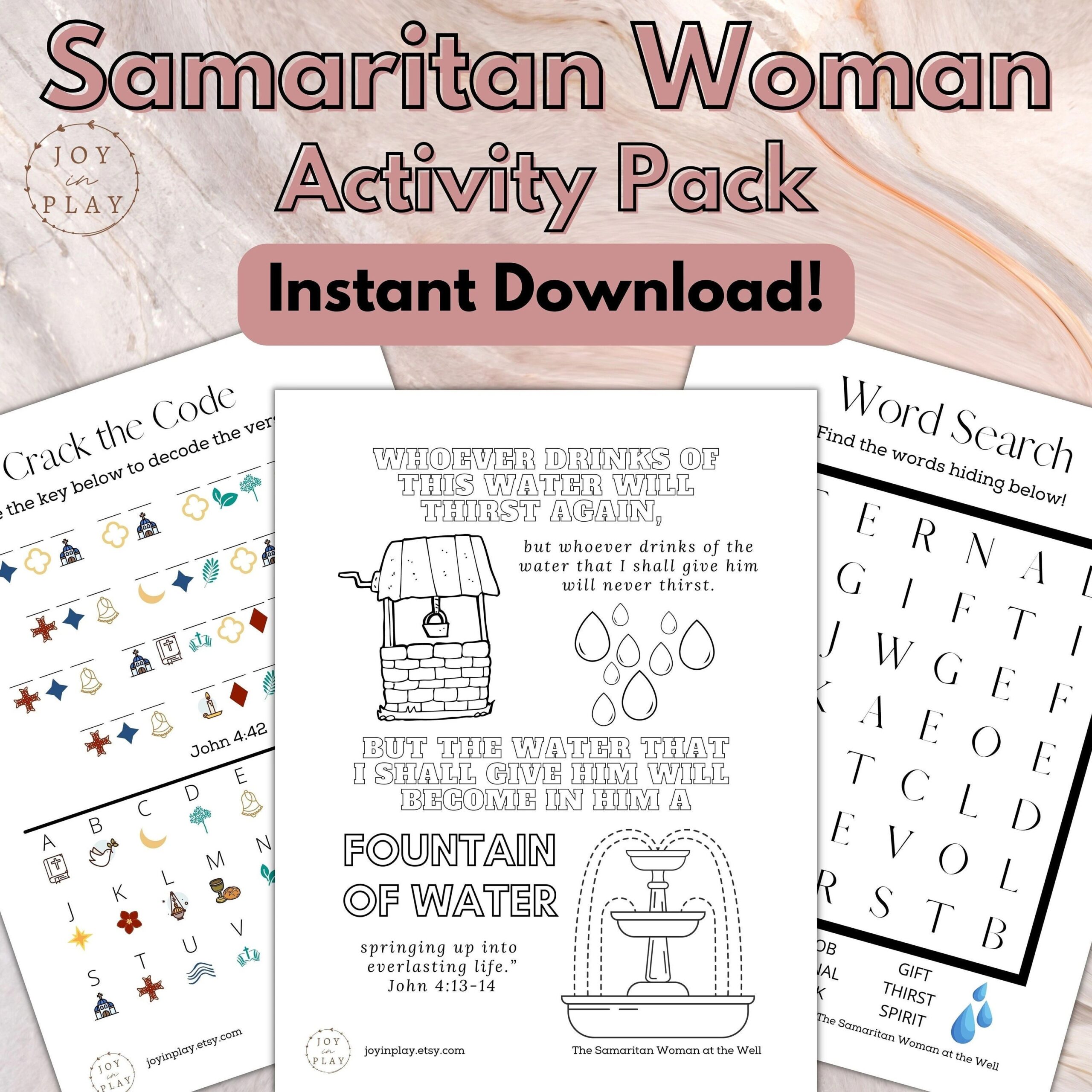 Samaritan Woman At The Well Printable Activity Pack Christian Bible Lesson Word Search Crack The Code Sunday School Homeschool Etsy
