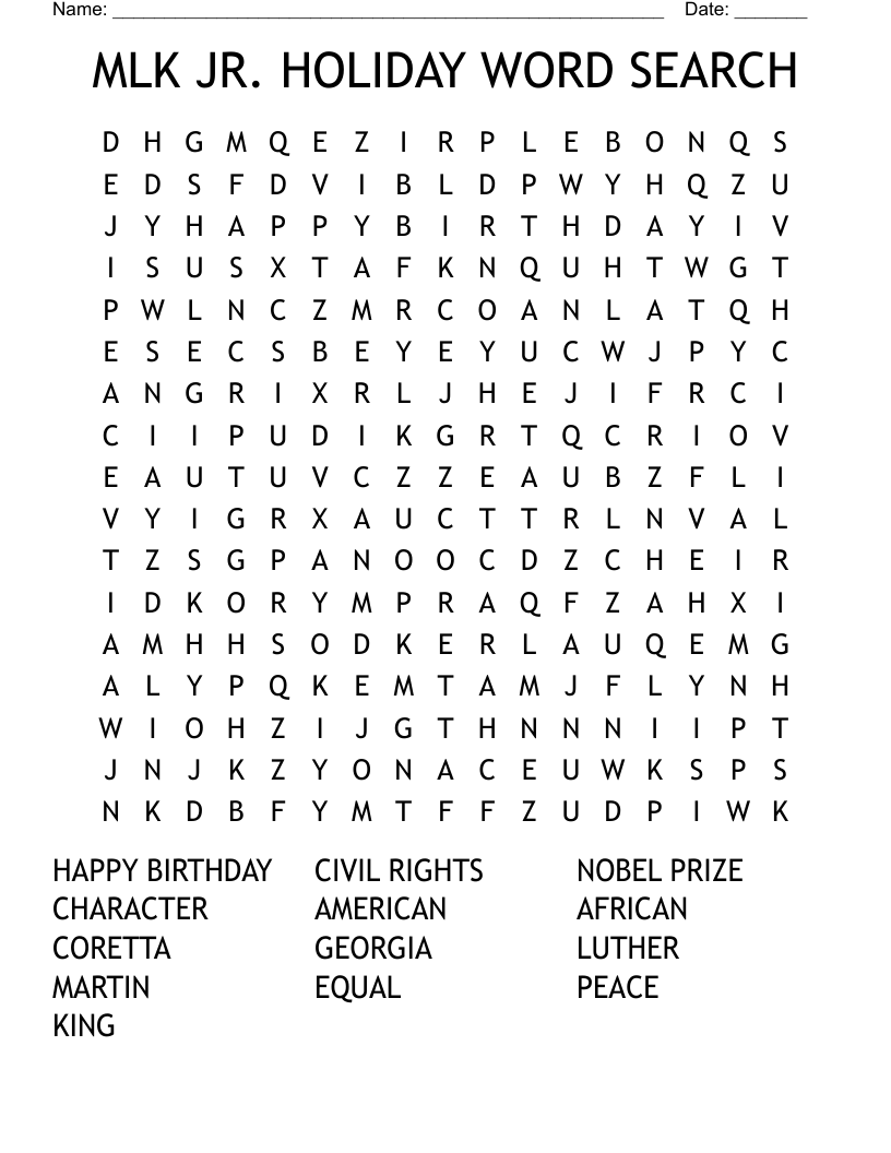 MLK JR HOLIDAY WORD SEARCH WordMint