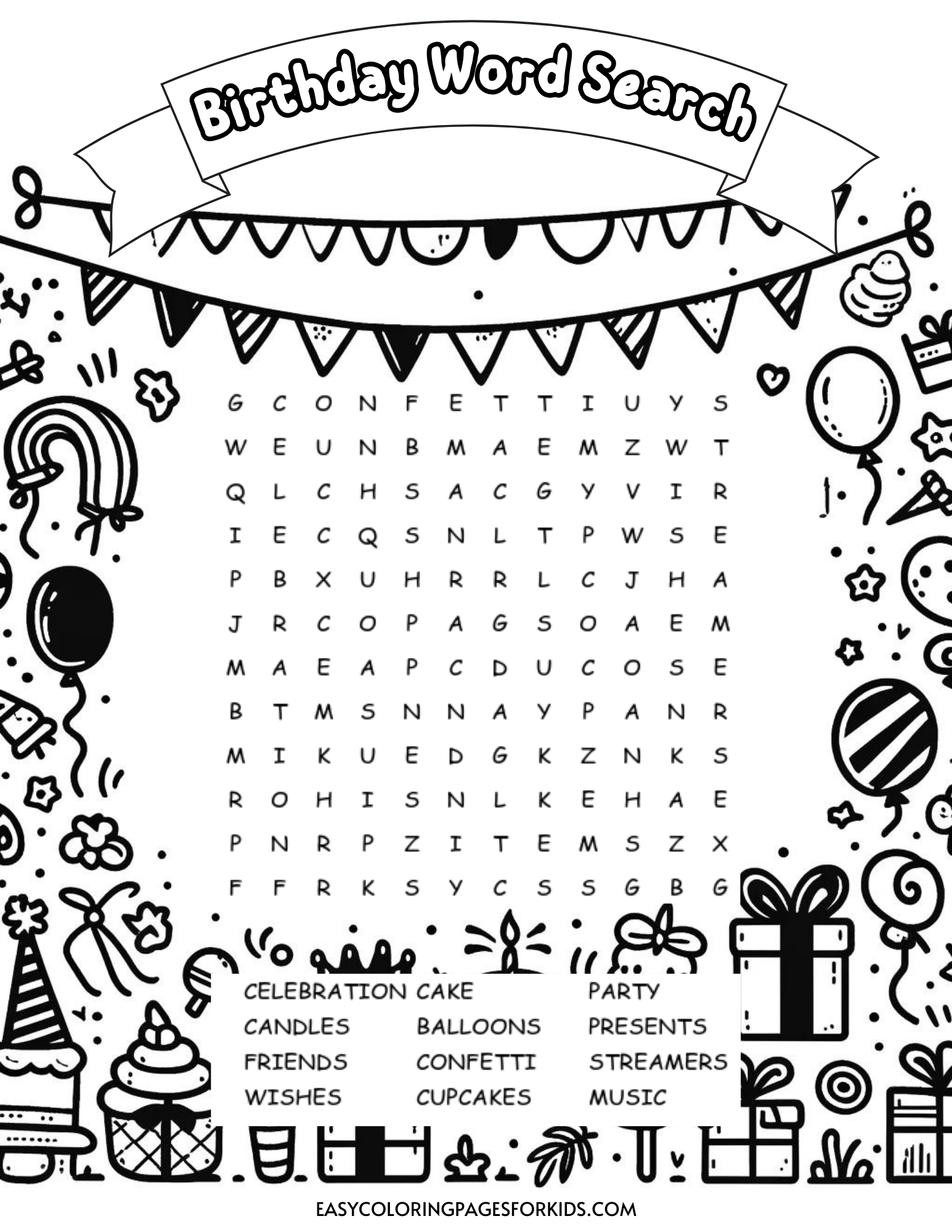 Free Printable Birthday Word Search For Kids Easy Coloring Pages For Kids