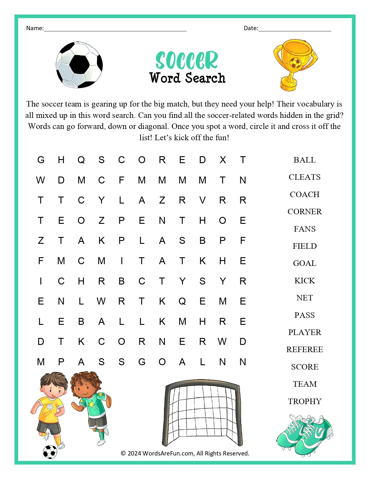 Soccer Word Search Fun For Kids