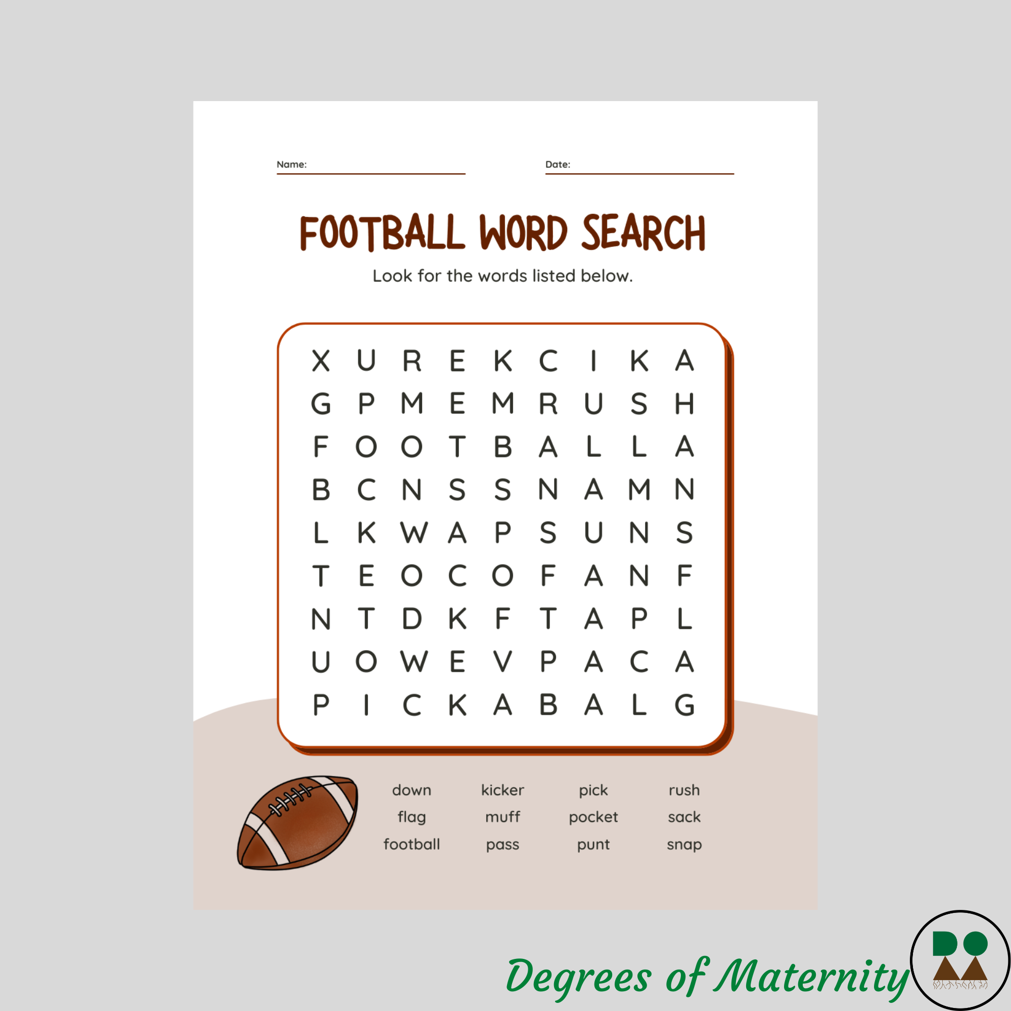 Football Word Search Pretty Providence