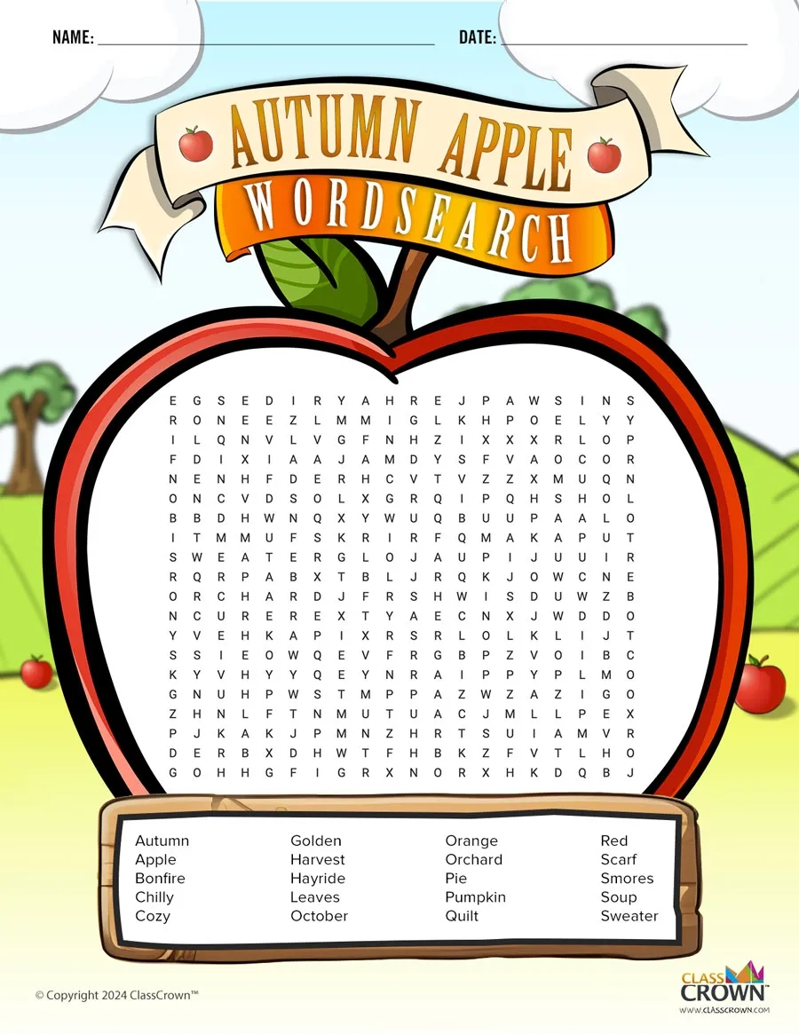 Autumn Apple Word Search Puzzles ClassCrown