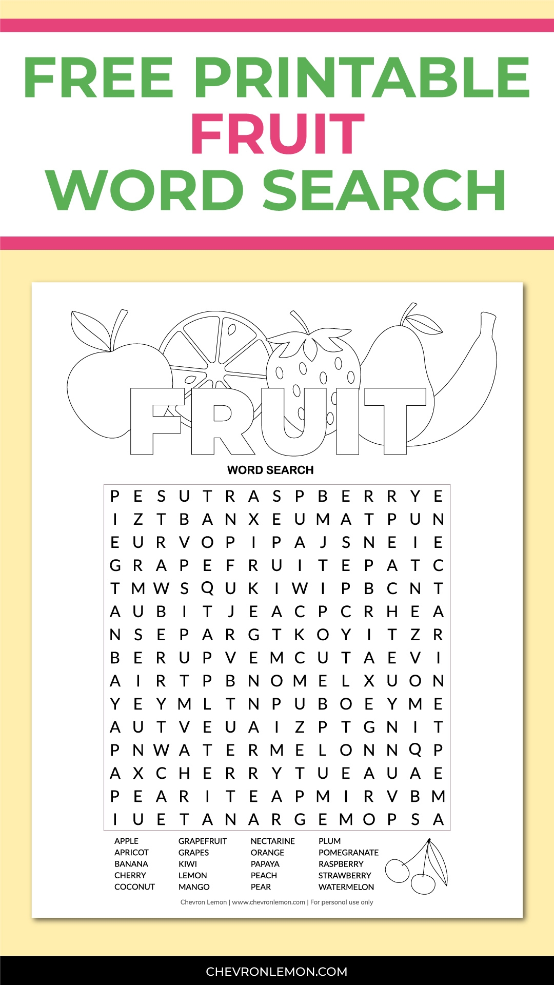Printable Fruit Word Search Chevron Lemon