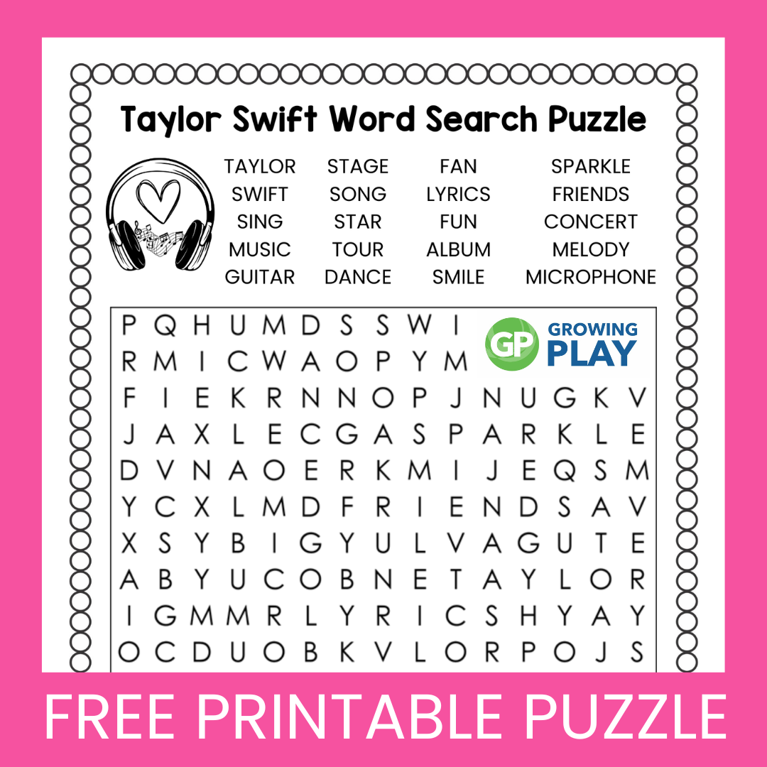 Taylor Swift Word Search Puzzle Free Printable Growing Play