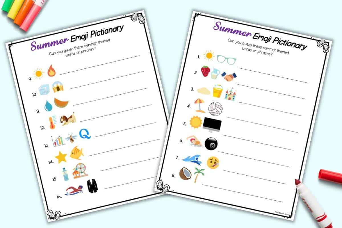 Free Printable Summer Emoji Pictionary The Artisan Life