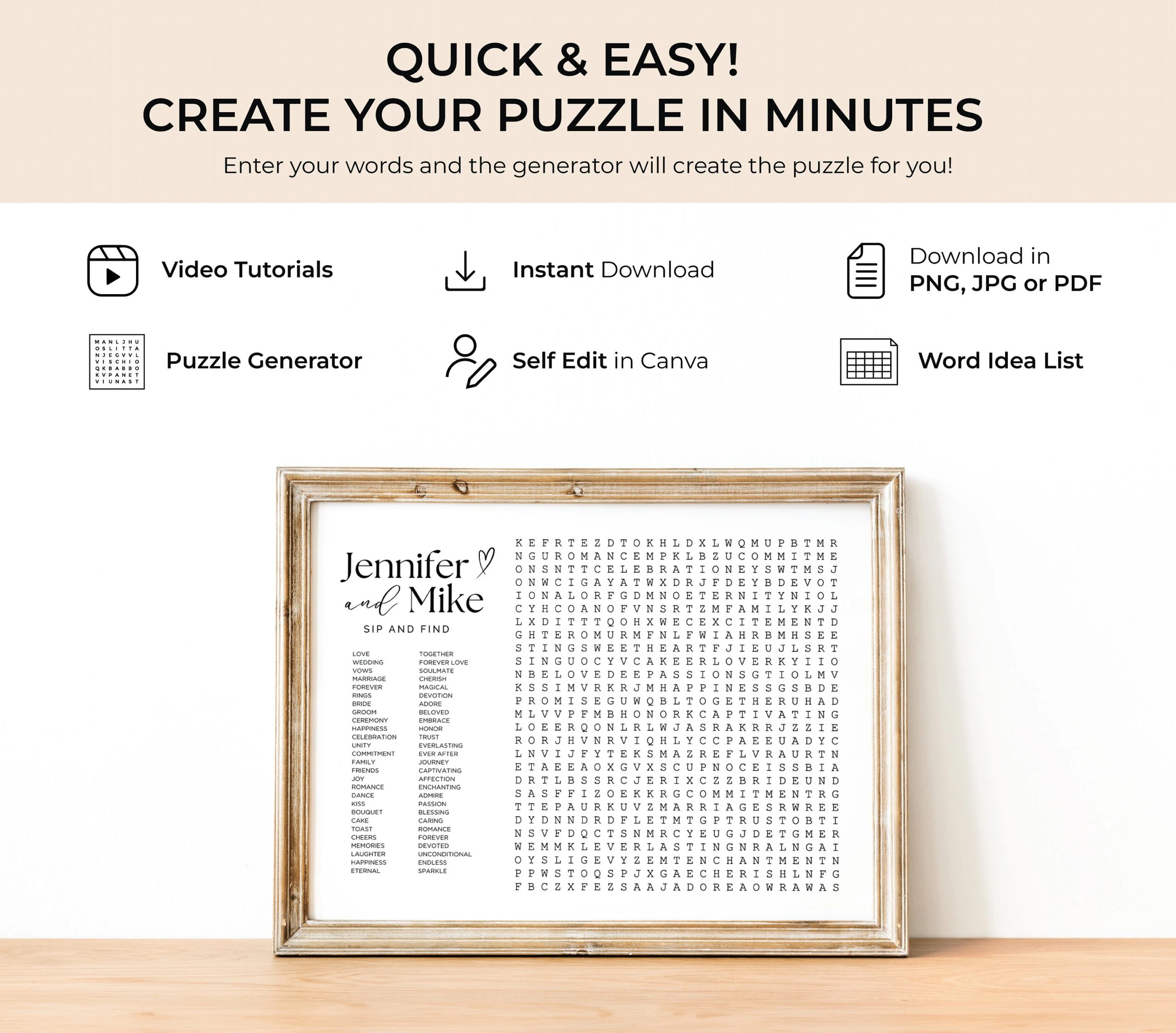 Custom Wedding Word Search Game Sip And Search Wedding Word Search Printable Word Search Puzzle Giant Word Search Template Game Wedding DIY Etsy