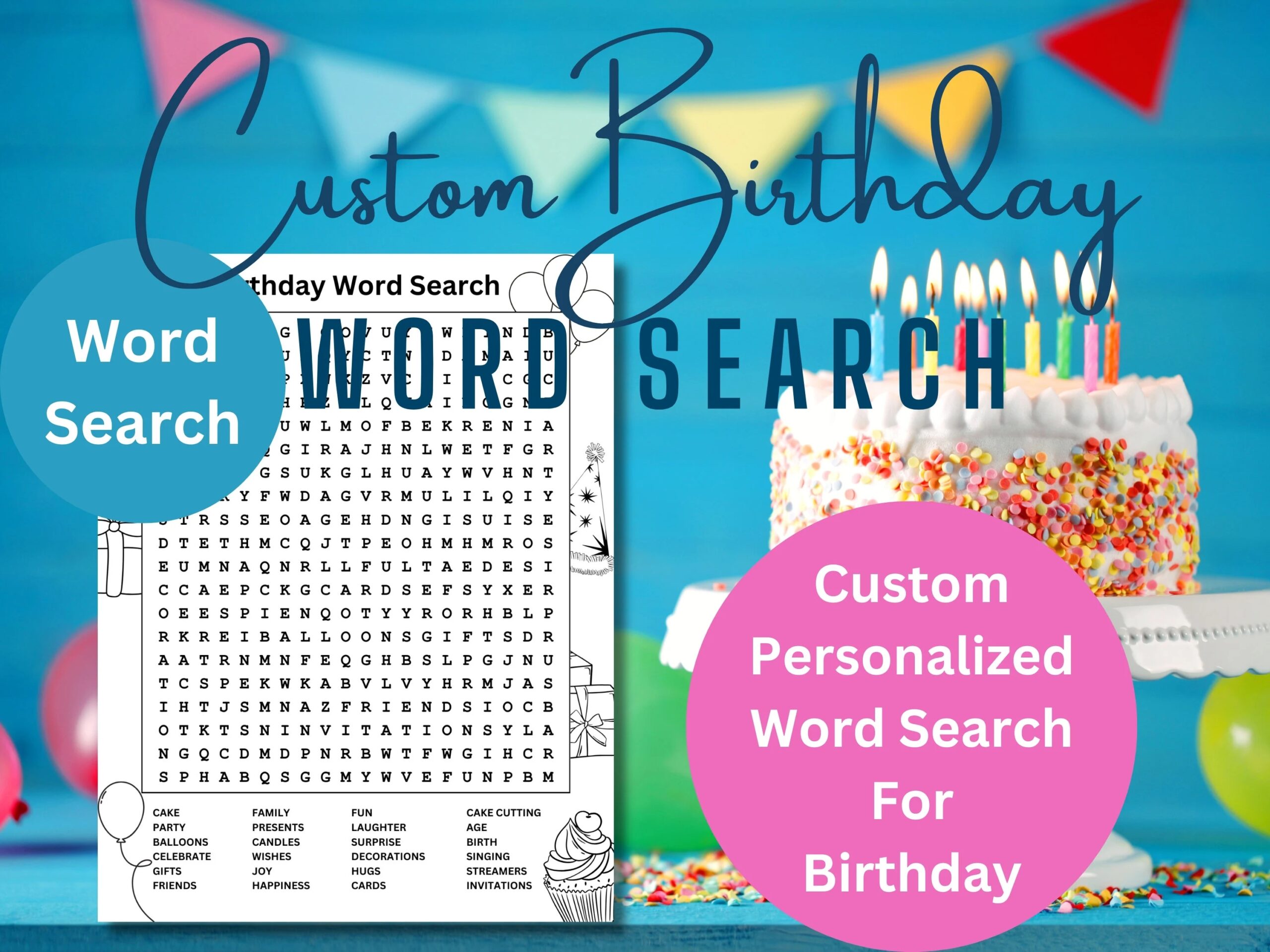Printable Custom Personalized Birthday Word Search Puzzle For Kids And Adults Fun Word Game For Parties And Classrooms Digital Download Etsy